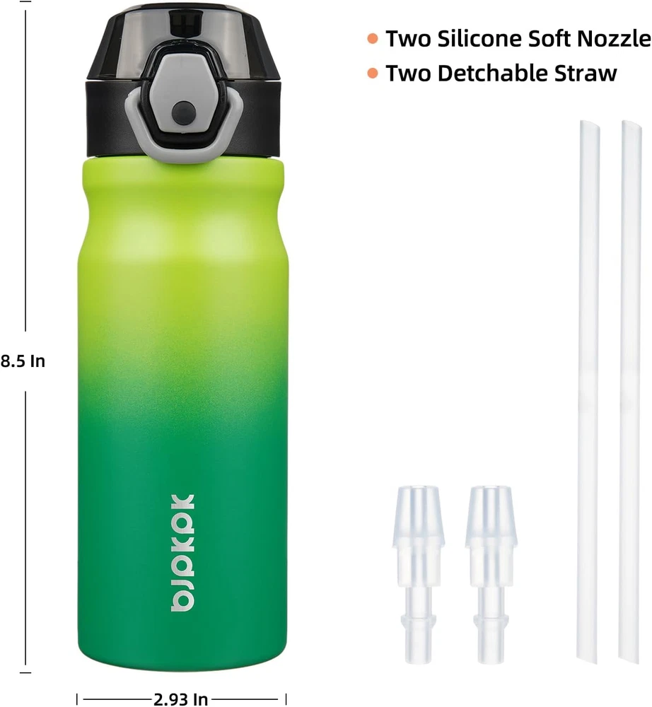 BJPKPK Stainless Steel Insulated Water Bottle With Straw Lid 18oz Reusable Metal Stainless Steel Water Bottles: Made Of Premium 18/8 Food Grade Metal, Durable And Resistant To Corrosion, Adopt Double Walled Vacuum Insulation Design Keeps Your Beverages Hot 8 Hours Or Cold For 24 Hours Leak Proof Locking Lid: Open Your Insulated Water Bottle With The Simple Push Of A Button, Easy For One-Handed Use, The Bottle Has A Protective Cap That Keeps The Drinking Spout Clean, Has A Silicone Locking Latch To Prevent The Lid From Opening BPA-Free Water Bottle With Straw And Carry Handle: Has 2 Straw And 2 Silicone Spout, All Can Removable For Easy Cleaning, Comfortable Handle Makes It Easy To Carry, Also Making It An Ideal Choice For Outdoor Activities Or Everyday Use Dishwasher Safe Insulated Water Bottles: Spend Less Time To Cleaning Your Flask, Just Pop Them Into The Dishwasher BJPKPK Metal Water Bottle Is Designed For Everyday Use, Travel, Work, Sports, Swimming, Camping, Parties Etc, These Tumblers Cups Are Also Wonderful Gifts Options For Friends Or Family BJPKPK 18oz Stainless Steel Water Bottle With Straw And Carry Handle, Double Walled Vacuum Insulated Metal Thermos Bottles, Reusable BPA-Free Sports Flask, Leak Proof Locking Lid with Soft Silicone Spout,Bamboo Grove