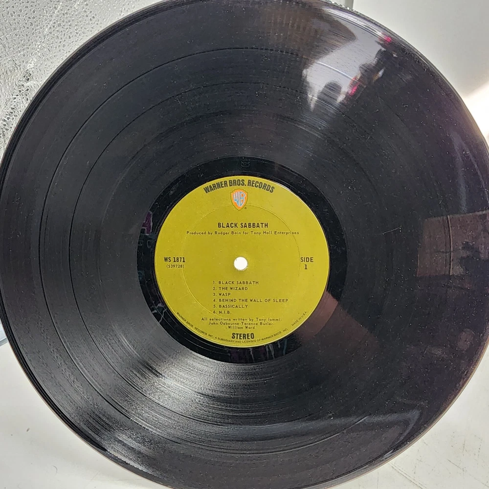 Type: LP Speed: 33 RPM Release Year: 1970 Release Title: Black Sabbath Case Type: Cardboard Sleeve Format: Record Style: Hard Rock, Heavy Metal Edition: First Pressing Record Size: 12" Color: Green Sleeve Grading: Good Plus (G+) Material: Vinyl Genre: Rock UPC: Does not apply gtin13: Does not apply Record Label: Warner Bros. Artist: Black Sabbath Record Grading: Very Good Plus (VG+)