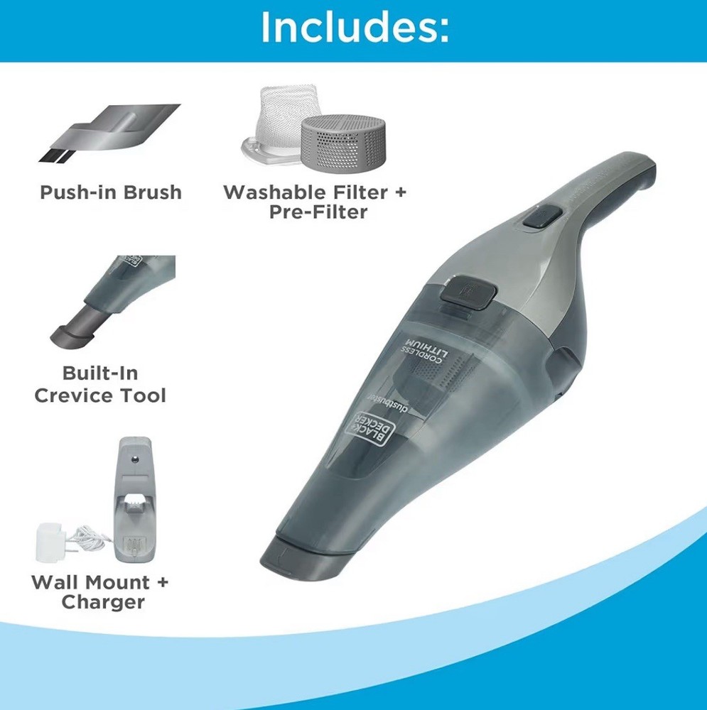 BLACK+DECKER dustbuster Handheld Vacuum, 8V Cordless, Hand Vacuum for Quick Cleanup with Crevice Tool and Washable Filter