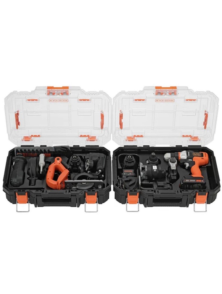 This BLACK+DECKER MATRIX 20V MAX* 12-Tool Combo Kit is great for DIY projects around the home. Decorate, repair, and even inflate tires + toys using this combo kit. The compact system can be neatly stored away in its MATRIX storage case. The MATRIX Quick Connect System is a part of the BLACK+DECKER 20V MAX* POWERCONNECT BATTERY SYSTEM which allows you to use one battery for multiple different tools. Feature & Benefit Value DIY ALL AROUND THE HOME: Great for many DIY projects from decorating and repair to inflating tires and toys. Comes with the MATRIX power unit, 11 attachment heads and a work light ULTIMATE MULTI-TOOL: The MATRIX Quick Connect System is designed to expand with your DIY needs by offering multiple attachments (sold separately) QUICK AND EASY: MATRIX Quick Connect System allows you to quickly and easily change out attachment heads to help complete your projects COMPACT STORAGE CASE: This MATRIX combo kit comes with a storage case that is stackable, portable and easily accessible ONE SYSTEM, ONE BATTERY: 20V MAX* POWERCONNECT Battery System allows you to use one battery with multiple tools FAST SHIPPING