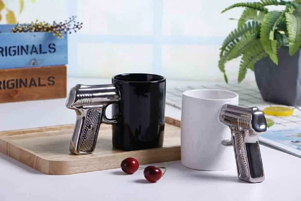 Grip Cups Handle Cup Ceramic Mug This is the perfect mug for a little shot of something extra in your coffee to help you get through Mondays. The Handle Mug combines the much needed calm of drinking coffee during a hectic day at the office with the aggression of fantasizing about pointing a firearm at your boss. Whether you¡¯re into or just cool stuff shaped like , you gotta pull the trigger on this purchase. The Mug Encourages You to Drink Dangerously If you¡¯ve ever wanted to drink coffee with a shoot ¡em up attitude, the Mug is the only cup that will allow you to do so without bringing a piece to the table. Having the Mug around, you¡¯ll either initially scare the crap out of the person still trying to wake up or induce a bit of laughter into the morning routine. The conventional handle has been replaced with a handgun grip complete with the trigger. Of course, it doesn¡¯t fire anything, but I think the illusion of the firearm will make anyone feel a little bit badass. If you¡¯ve been wanting to inject a bit of fun and danger during coffee breaks, the Mug can provide that entertainment. Material: Ceramic whiteware A shaped ceramic coffee mug Ceramic product for hot beverages This product does not carry an extended Cool style cup