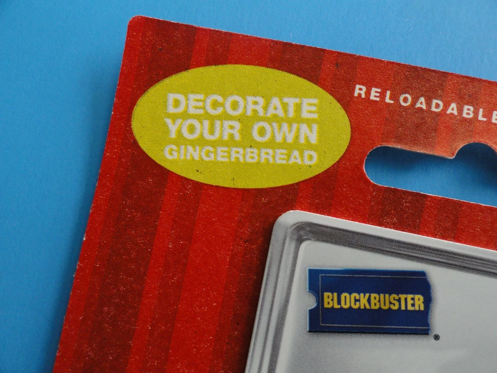 ****THERE IS NO VALUE ON THIS CARD AND IT CAN NOT BE LOADED - COLLECTIBLE ONLY**** THIS LISTING IS FOR A BRAND NEW, NEVER USED, ORIGINAL BLOCKBUSTER VIDEO GIFT CARD FROM FROM CHRISTMAS OF 2008! THIS VINTAGE CARD IS STILL ATTACHED TO THE ORIGINAL BACKER CARD, AND COMES COMPLETE WITH SELED STICKERS TO DECORATE THE GINGERBREAD MAN!! THIS IS A VERY RARE, HARD TO FIND ITEM AS BLOCKBUSTER IS GONE, WOULD MAKE A GREAT CHRISTMAS GIFT. IF YOU SEE MULTIPLE CARDS YOU WOULD LIKE, I WILL COMBINE SHIPPING FOR SEVERAL!! IF INTERESTED IN MORE THAN ON CARD, PLEASE MESSAGE ME BEFORE YOU PAY SO I CAN CALCULATE A COMBINED SHIPPING COST FOR ALL YOU AR PURHCASING. CARD(S) WILL BE SHIPPED TO YOU VERY CAREFULLY PACKED WITH CARDBOARD, TRACKING WILL BE PROVIDED AS I USE EBAY SHIPPING. (SHIPPING RATE IS FOR U.S. BUYERS ONLY, IF YOU REQUIRE INTERNATIONAL SHIPPING PLEASE MESSAGE ME FOR A RATE TO YOU LOCATION) PLEASE BE SURE TO CHECK OUT MY EBAY STORE AS I HAVE TONS OF GIFT CARDS AND WILL BE ADDING LOTS MORE!! THANKS FOR LOOKING!! INVENTORY #76