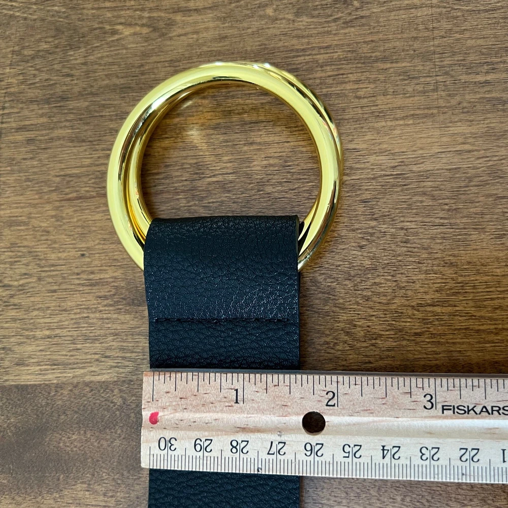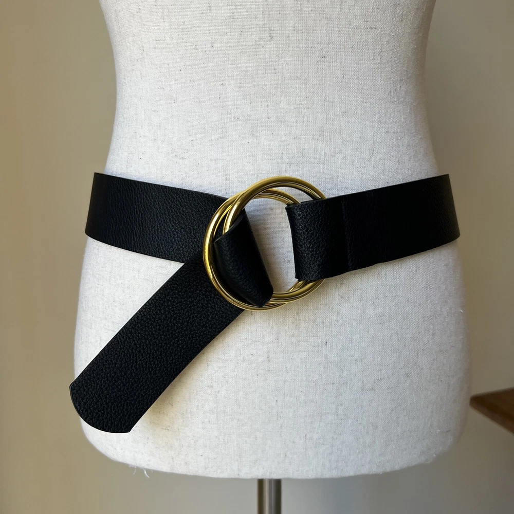Add some bohemian flair to your wardrobe with this black pebbled tumble belt from B-Low The Belt. Made from high-quality faux leather, this wide belt features a double buckle and adjustable strap for a custom fit. The gold-plated hardware adds a touch of glamour, while the solid black color and lack of embellishments make it a versatile accessory for any outfit. Perfect for festivals, travel, or everyday wear, this fashion belt is a must-have for any stylish woman. The belt is available in size L/XL and is designed to fit most waist sizes. Whether you're dressing up or down, this B-Low The Belt will add a touch of American classic and bohemian style to your look.