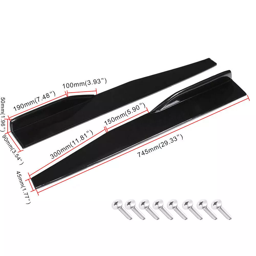 For BMW 3 4 5 series Front Rear Bumper Lip Spoiler Splitter Body Kit Side+Skirt Package Included 1set Front Bumper Lip Spoiler Specification: Condition: 100% Brand New Type: Front Lip Chin Bumper Body Kits Material: ABS Color: Glossy Black Placement on Vehicle: Front ; Lower Features: Give your vehicles sporty appearance Protect Your Bumper From Scratching Strict quality control standards to Build and test. Come With Screws, Pre-drilled holes for quick installation Professional Installation Is Highly Recommended. Fit for Universal width 75". Package Included 2x Side Skirt Specification: Condition: 100% Brand New and High Quality Type: Car Body Side Skirts Material: ABS Color: Glossy Black Side Skirt Size: 29 in x 1.77 in x 3.54 in Position: Side Skirt Extension Features: Universal modified side skirt for car sedan. While the side skirts don't affect the front ground clearance too much, it enhances the side extension of the in a very pure and exciting way. A Perfect Aftermarket Replacement. Professional Installation Is Highly Recommended. Package Included 2x Rear Lip Specification: Condition: 100% Brand New and High Quality Type: Car Body Rear Lip Material: ABS Color: Glossy Black Rear Lip Size:17.32 in x 4.33 in Placement on Vehicle: Left, Right Package Included: 2x Strut Rods Product Description: This listing features for one pair (2 pieces) of blue front bumper lip splitter rod strut tie bar. These front bumper lip support rods are used to reinforce your front splitter or rear diffuser. It is universal fit for any cars, SUVs, trucks. You can extend its length from 8 inches to 11 inches. Specification: * One pair (2 pieces) front bumper lip splitter rod strut tie bar * Material: Made with premium quality aluminum alloy chrome finish * The length can be adjustable from 8" to 11" * These include fully articulated top and bottom joins which allow them to be installed at any angle * It will support your vehicle bumper lip splitter stronger with and awesome eye-catching look Package Includes: 4pcs/set Front Lip Chin Bumper Body Kits 2x Side Skirts 2x Rear Lip 2 x Adjustable Strut Rods Screws kit