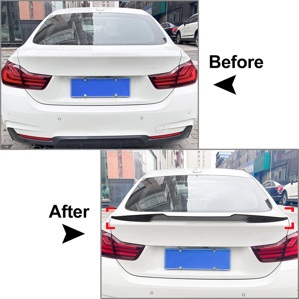 Product Description Rear Trunk Spoiler Wing Lip For BMW F36 4 Series 4 Door Gran Coupe 14-2020 Rear Trunk Spoiler Wing Lip For BMW F36 4 Series 4 Door Gran Coupe 2014-2020 Features: 1. When driving at high speed, the rear spoiler can increase the down force of the tail, which can improve the high-speed driving stability of the car. 2. Made by premium quality ABS plastic, durable, waterproof, scratch-resistant, wear-resistant, dirt-resistant and anti-corrosion, not easy to break or deformed. 3. Give a stylish and clean look to the exterior of your vehicle with this rear spoiler. Blending sleek and aerodynamic design with excellent function, it will add a touch of edginess to your vehicle's appearance. Specification: Condition: Brand New (Never Been Used or Installed) Material: High Quality ABS Plastic Color: Carbon Fiber Black Fitment Type: Performance/Custom Placement on Vehicle: Rear Fitment: For BMW F36 4 Series 4 Door Gran Coupe Model Only 2014-2020 Will Not Fit For 2 Door Coupe or Convertible Model. Because the same model car may be differently produced in different country. Please ensure the part of your car like our picture shows, or it will not fit. Packing Included: 1Pcs Rear Trunk Spoiler Wing Notes: 1. No installation instruction included, professional installation is highly recommended. 2. Due to technology, the carbon fiber texture may be slightly deformation and difference. 3. The real color of the item may be slightly different from the pictures shown on website caused by many factors such as brightness of your monitor and light brightness. About Us 1. Ship from Chino, CA 91710 , and only to eBay ADDRESS. Package handling only takes 1 business day at our warehouse, so please make sure entering correct payment and shipping information before checking out. 2. We only ship to the Lower 48 states, and we do not ship to FPO, APO or PO Box addresses. 3. Import duties, taxes and charges are NOT included in the item price or shipping charges. These charges are the buyer responsibility.Please check with your country customs office to determine what these additional costs will be prior to bidding/buying. Payment We only accept PayPal payment. Returns 1. If you receive any damaged or defective items, we will exchange it as quickly as possible. 2. You must contact us within 7 days of delivery of the product to notify us of any defects. 3. You need to send a picture to prove the problems by using ebay's attaching files button 4. Items must be in original box and kept in good condition. 5. Buyer is responsible for return shipping cost if there isn't any problem with the product. No matter the item is free shipping or not, we pay money for the shipping.You need to cover the actual shipping cost provided by us. Contact Us 1.Do not hesitate to contact us anytime before and after your purchase, we are committed to your 100% customer satisfaction. 2.I am here and ready to assist you with any questions or concerns you might have before or after the purchase. 3.My goal is to make sure you are a happy customer and pleasant shopping with us. Feedback If you are satisfied with the purchase and our total service, your comment is very important in our business success. Please take a minute to leave us a positive feedback with an overall Detailed Selling Rating (DSR) of 5. Our eBay account setup auto feedback, so eBay system gives you automatically Positive feedback back after your positive feedback left. If you plan to give us a neutral/negative feedback Or open ebay/paypal case, please write to us immediately so that we can do our best to resolve your problem. powered by