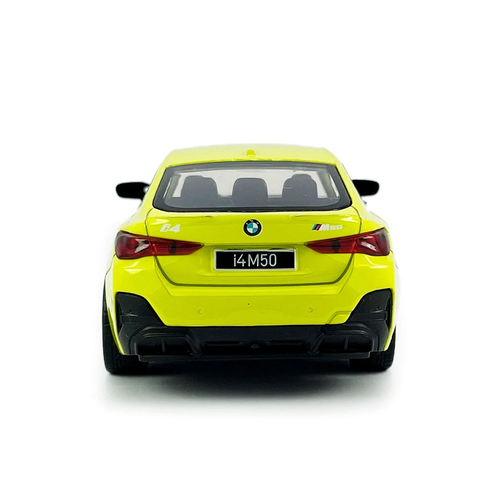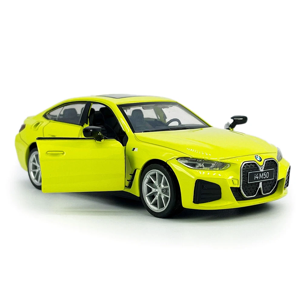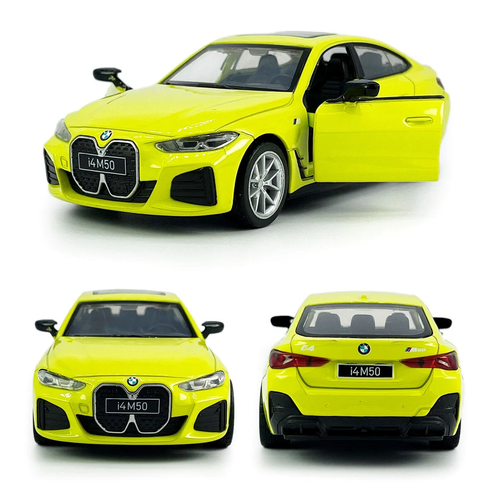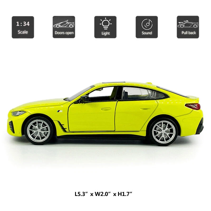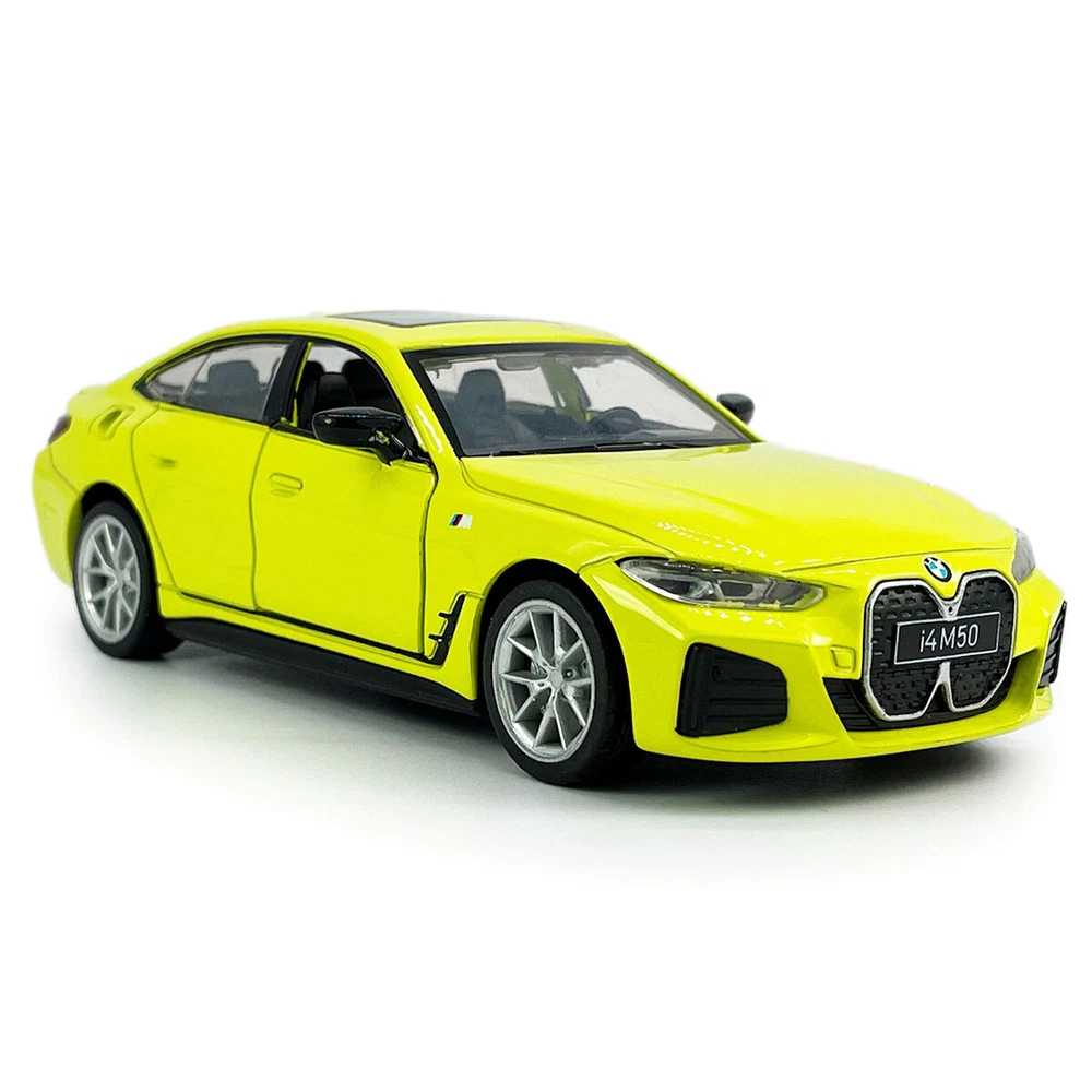 BMW i4 M50 Toy Car 1:34 Diecast Model Vehicle Light Sound Doors Open Kids Yellow