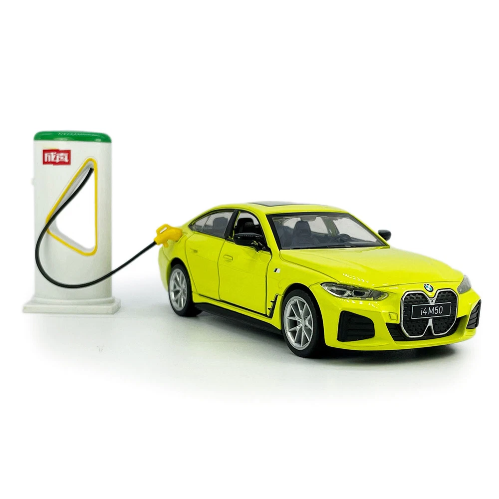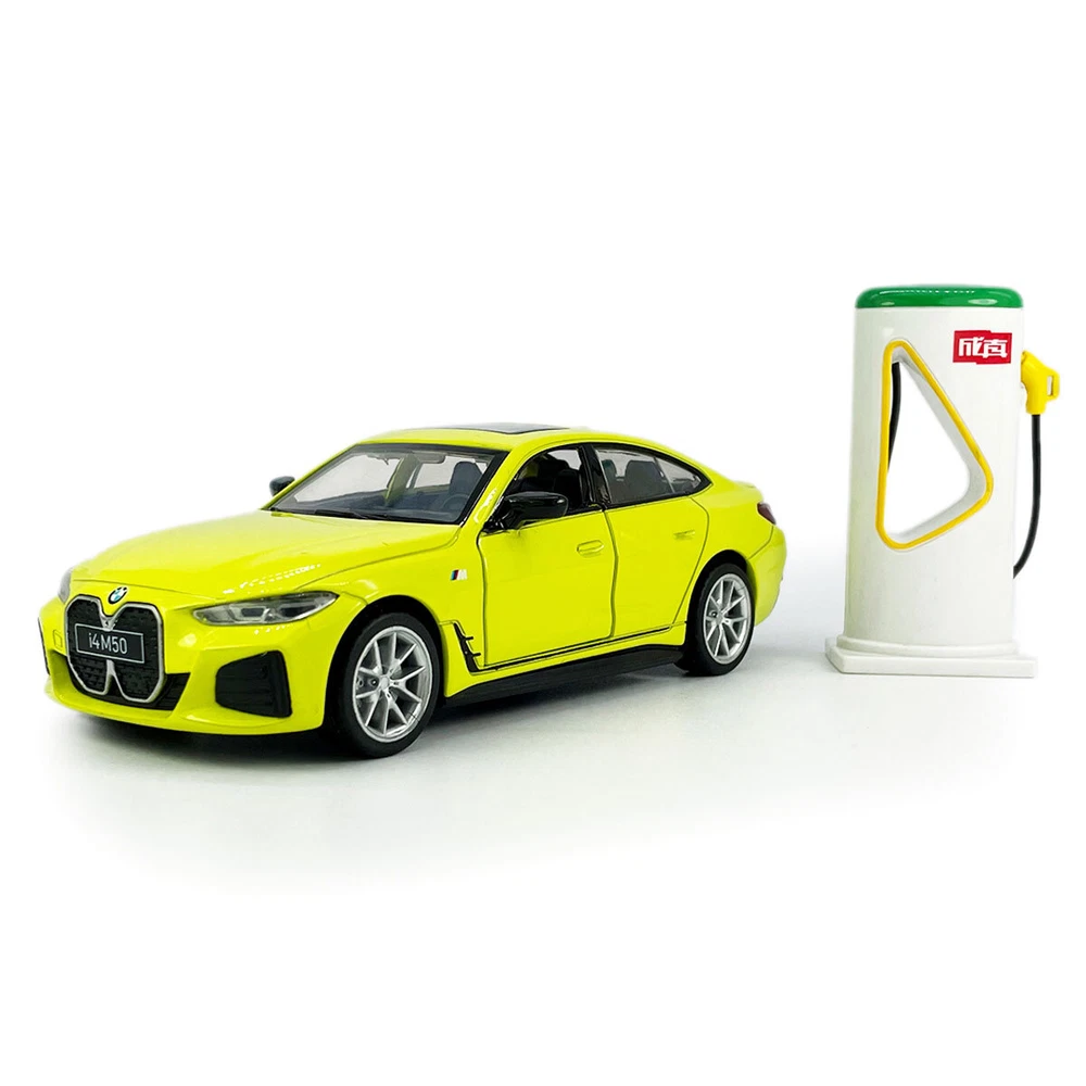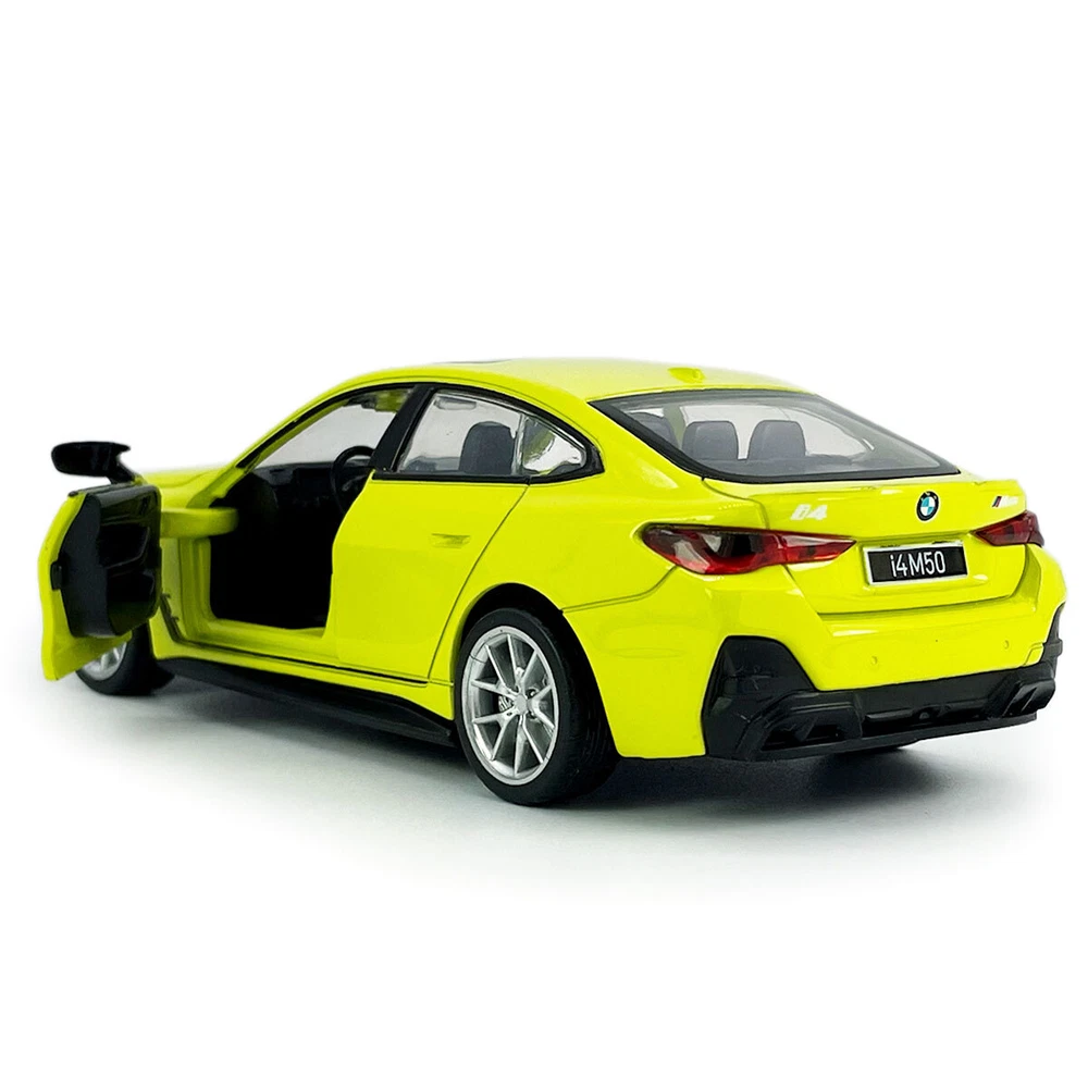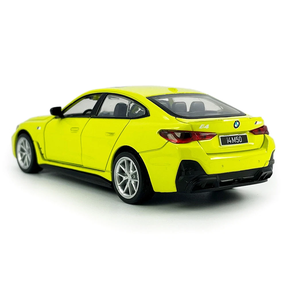BMW i4 M50 Toy Car 1:34 Diecast Model Vehicle Light Sound Doors Open Kids Yellow