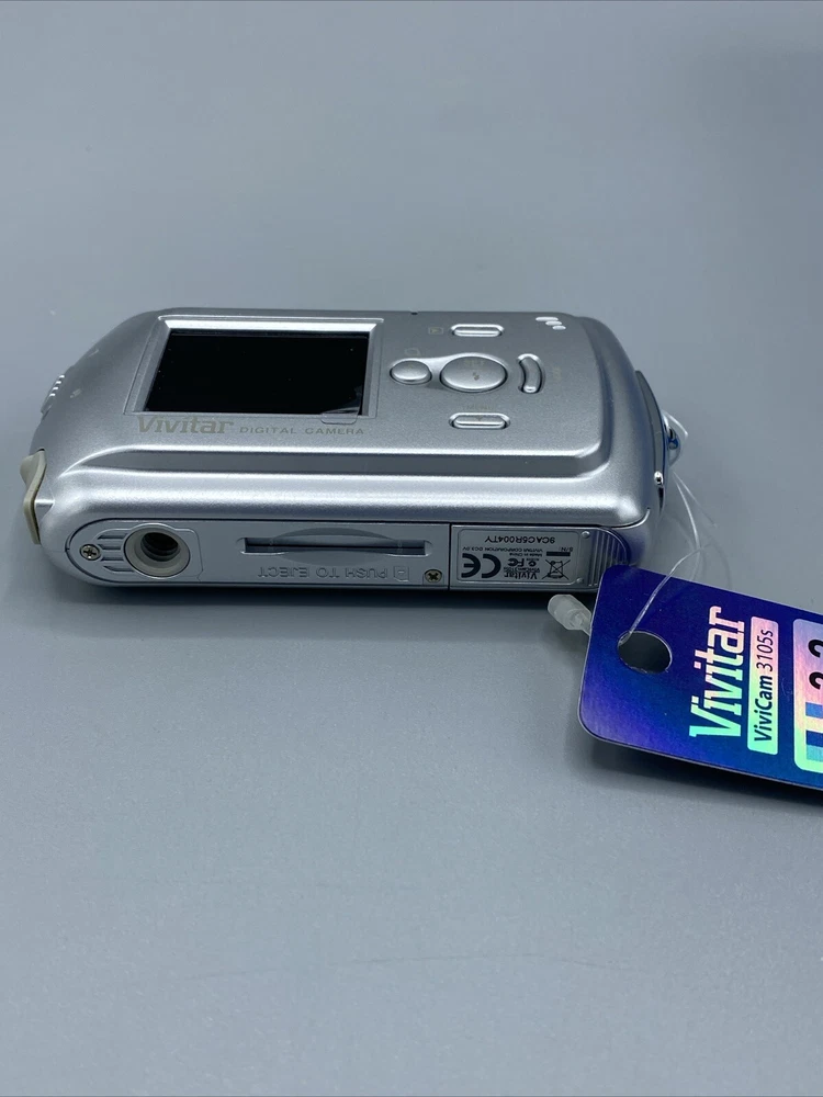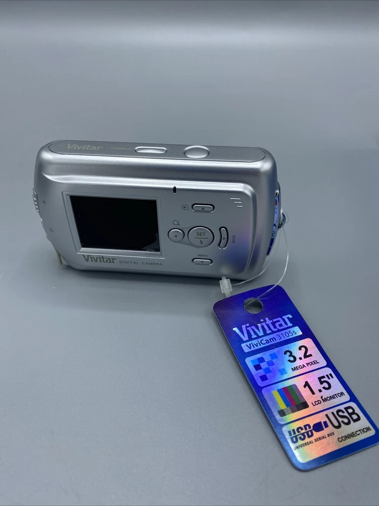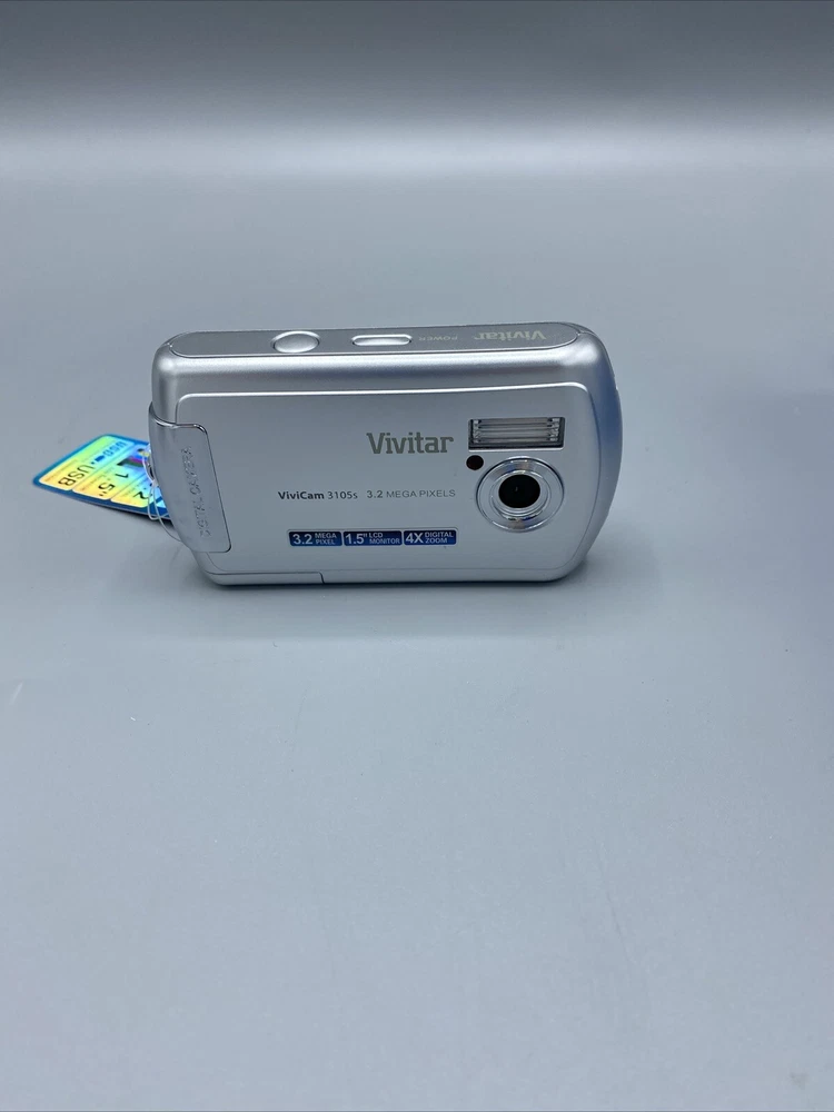 Battery Type: AAA Model: Vivicam 3105s Series: Vivitar ViviCam Brand: Vivitar Item Length: 9.5cm Maximum Resolution: 3.2 MP Optical Zoom: 4x Type: Compact Colour: Silver Item Height: 5.5cm Item Width: 2.5cm Digital Zoom: 4x