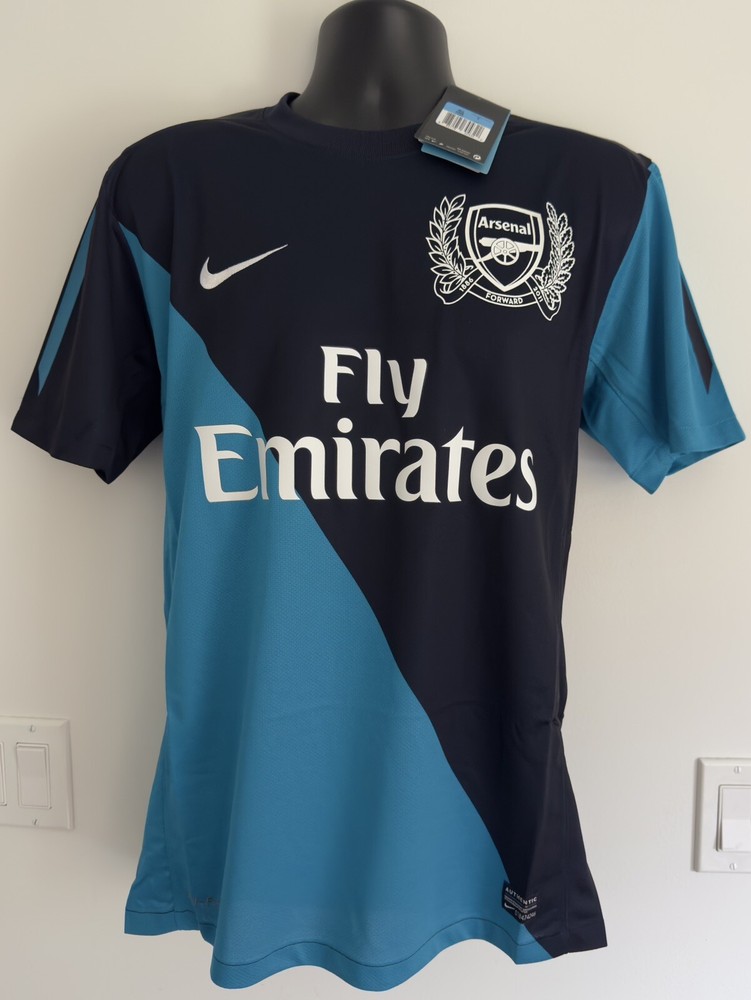 BNWT Arsenal FC 2011/12 Third Jersey Shirt 11/12 Nike 125 Years Anniversary RARE NEW 3rd Kit. Dispatched via Canada Post. Authentic Arsenal FC X Nike product. Product code: 423983-472 Brand new with tags condition. No stains, holes, marks or other blemishes. The shirt has been stored out of direct sunlight to avoid any heat related damage. Adult size Medium (M). Pit-to-pit measurement is approximately 21 inches. Shoulder-to-hem measurement is approximately 29.5 inches. All pictures are my own and are of the exact shirt you will receive. All available items ship from a pet-free and smoke-free environment. All purchases will be packed securely and shipped the next working day.