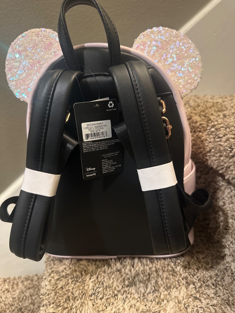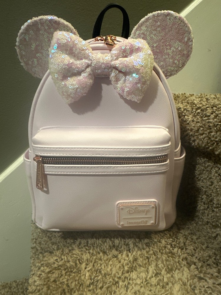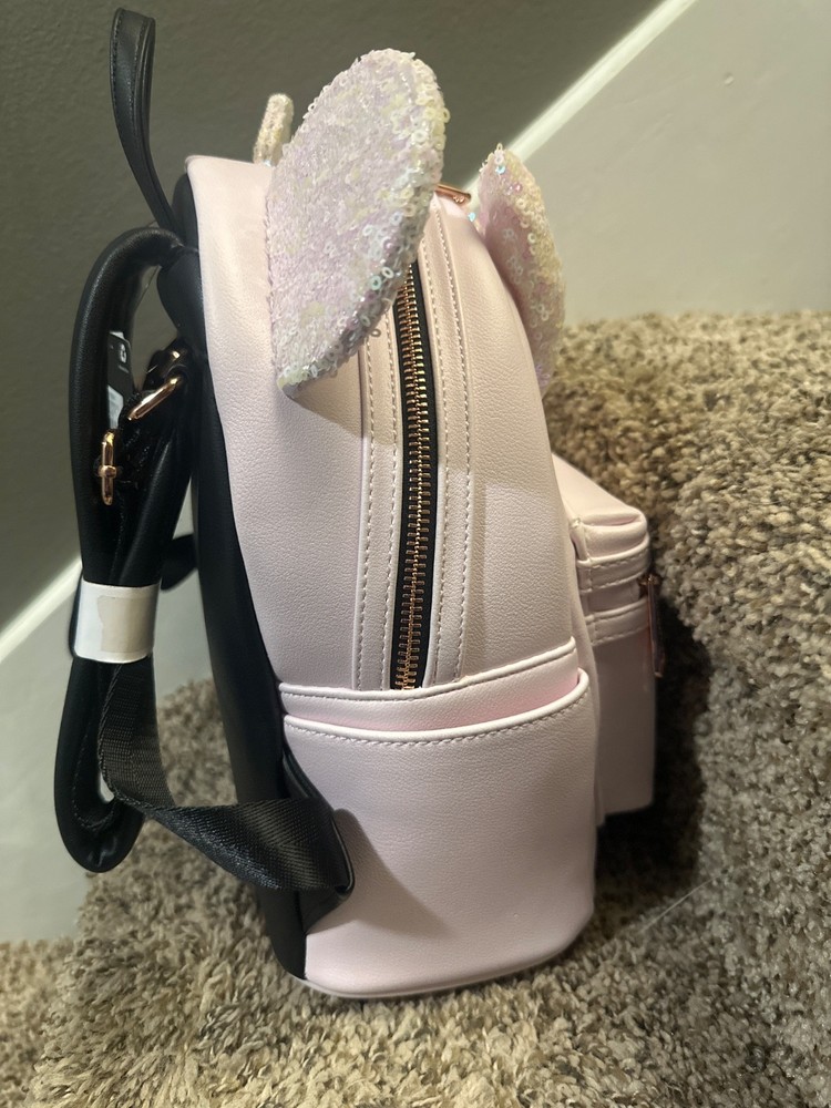 BNWT Disney Loungefly Minnie Mouse Pink Iridescent Sequin Backpack