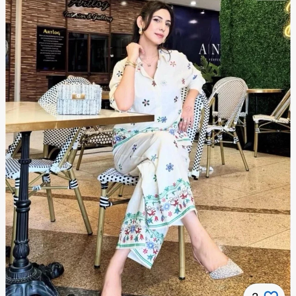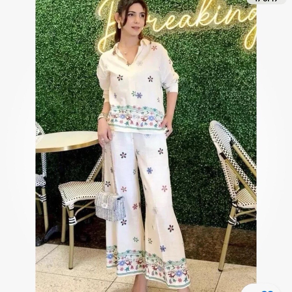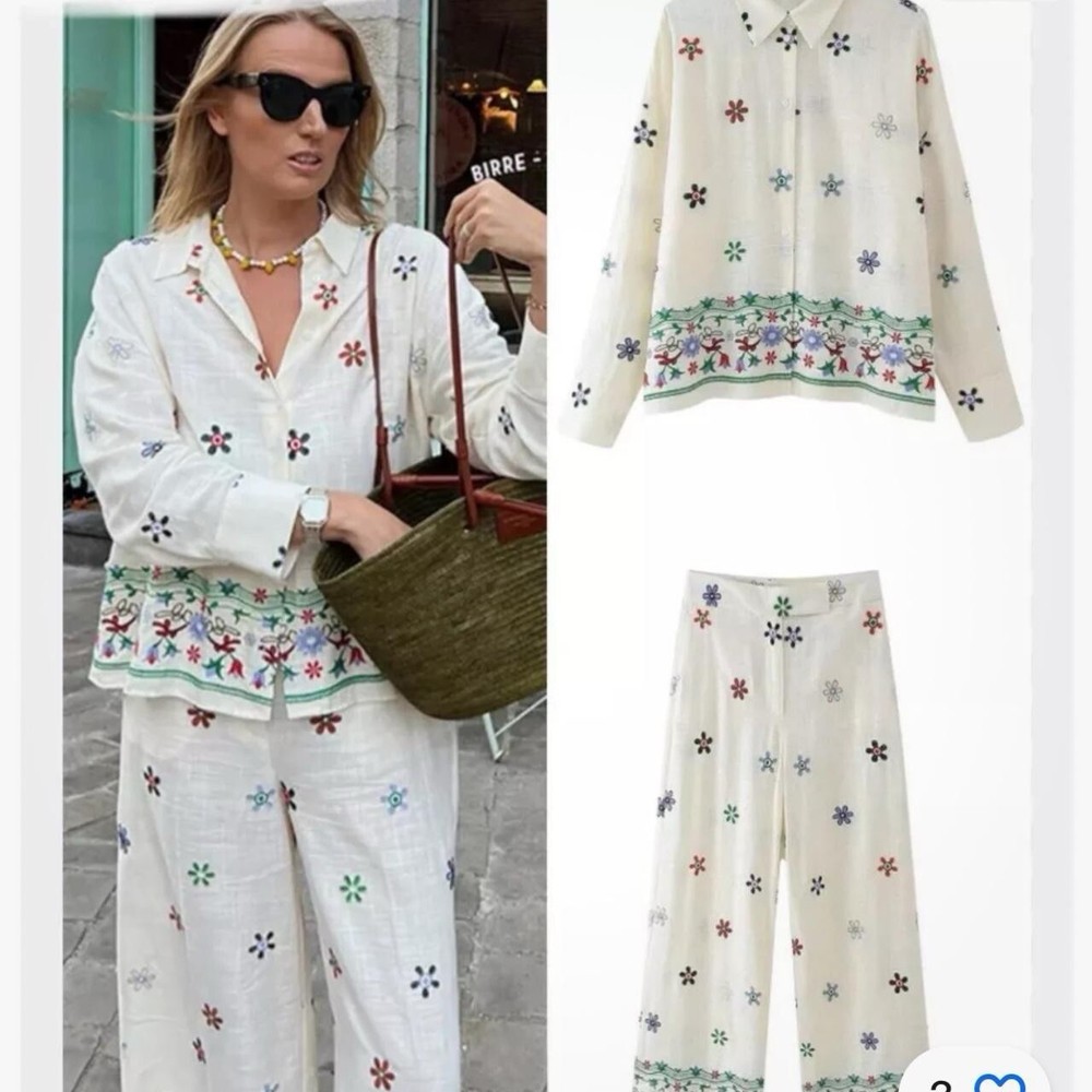 Elevate your wardrobe with the effortlessly chic BNWT Zara Black Embroidered Blouse & Flowing Trousers Co-ord Set, perfect for a variety of occasions. Crafted in a regular fit, this 2-piece ensemble is designed to flatter with its meticulous embroidery and flowing silhouette, ensuring you look put-together without compromising on comfort. Available in size M the set includes a sophisticated top and matching trousers, each piece showcasing the quality and style Zara is renowned for. Adaptable across autumn, spring, and summer with the right accessories, this outfit is a versatile addition to your collection, embodying elegance and contemporary fashion.