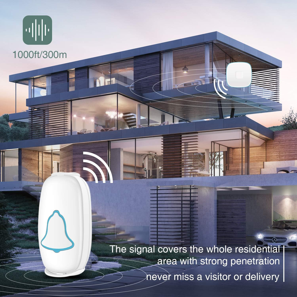 Store New Arrivals Add to Favorite View Feedback Contact BO YING Wireless Doorbell, Bo Ying Waterproof Door Bell with 38 Melodies and Led Flash, Easy Install, 1000-Foot Range,1 Push Button & 1 Receiver, White Description Item model number A-808 Part Number A-808 Batteries Required? No Item Package Quantity 1 Color White Product Dimensions 77.17 x 26.77 x 3.94 inches Battery Cell Type Alkaline Item Weight 4.6 ounces Batteries Included? No Voltage 110 Volts Manufacturer BO YING 【Easy to Install】Just plug the mini receiver into a socket and fix the transmitter on a wall with the accessories provided; Includes 2 screws, 2 anchors, a battery, a double-sided tape, and even a screwdriver. Will not interfere with other equipment in your home or those of your neighbors, ensures you will never miss a visitor. This wireless doorbell set is by far the most convenient choice for your home and business. 【Waterproof & Robust Push Button】A stylish modern design in classic white, excellent materials keeps itself from getting higher temperature & interference. Waterproof & Dustproof, remote transmitter button is rated IP44 weatherproof. Works between -22 °F to 158 °F; withstand various harsh weather conditions, acceptable for outdoor use. Our door bells are certified with CE, RoHS, FCC. 【Ultra Long Operating Range】Operating range up to 1000ft / 300m in the open area, ensures you to hear and answer the doorbell in time. Either you are occupied a few rooms away or on another floor, in the garden or kitchen, you will always be easily informed when someone is calling from outside, never worry about missing visitors. 【Widely Applied & 38 Ringtones】A perfect wireless doorbell kit for home, apartment, school, villas, office, warehouses, hotel, factory, hospital and more. There are 38 different ring tones with 4 levels of adjustable volume from 25db to 85db. The stereo speaker delivers rich and crisp sound, easily choose and set your favorite tones as you wish; Flashing light indicators which are easy for people including the hearing impaired to notice. 【Warranty】Our BO YING wireless doorbell enjoys the 5-year warranty and friendly customer service. We stand behind all of our high quality products and each is backed by the strongest Manufacturer Support. If you have any issues with our Wireless Doorbell, we're here to make things right. For a highly-rated, affordable wireless doorbell, one of your best options is the BO YING Waterproof Door Chime Kit. This product is easy to set up and has a wide variety of options that make it a great wireless doorbell for any home. Our doorbell kits have 3 items:1 Push Button & 1 Receiver,2 Push Buttons & 1 Receiver,1 Push Button& 2 Receivers. A perfect use case scenario for these products: 1 Push Button & 1 Receiver This item works well for homes or villas. This item can be used great for classroom and offices. This item also can be used as a simple alert device. A paging device for the elderly, can signal for care when they need it most. 2 Push Buttons & 1 Receiver Pairing two buttons and a chime to set different tones can help you distinguish the front and back door. Always greet your visitor in time. 1 Push Button& 2 Receivers A perfect use case scenario for this product would be if you can put one receiver on the first floor, the other one in the basement, garage, or second floor. Specifications Wireless Range: 1000ft maximum in the open air Internal Sounds: 38 Chimes Volume: 4 level adjustable levels (25db to 85db) Receiver Power: AC 110V ~ 220V 50Hz / 60Hz Transmitter Power: 1 x 12V 23A battery Package Includes 1 x Push Button (Transmitter) 1 x Plugin Chime (Receiver) 2 x Screws 1 x Screwdriver 1 x Double-Sided Adhesive Tape 1 x 12V 23A battery for Transmitter 1 x User Manual ABOUT US We offer the best prices around on high quality products. Our E-store includes media such as books, movies, music and games while offering electronics, toys, sporting apparel, clothing, tools, general home, garden items and more. SHIPPING We are always working hard to ensure your package arrives as soon as possible. Please understand that some factors like weather, high postal traffic, and the performance of shipping companies are outside of our control. We offer free shipping to the lower 48 states and ship within 2 business days of payment, usually sooner. We do not accept P.O. Boxes. Please provide a physical address. RETURNS We offer a 30-Day Return Policy on items which you are not completely satisfied with. You have the option for a full-refund or an exchange of the item. No returns are available on items shipped outside of the USA. PAYMENT We accept PayPal. CONTACT US This page content is yet to come Please ad us to your favorite seller and visit again later Thank You CUSTOMER SATISFACTION We try our very best to make sure every customer is completely satisfied. If there's a problem, message us! We're happy to help.