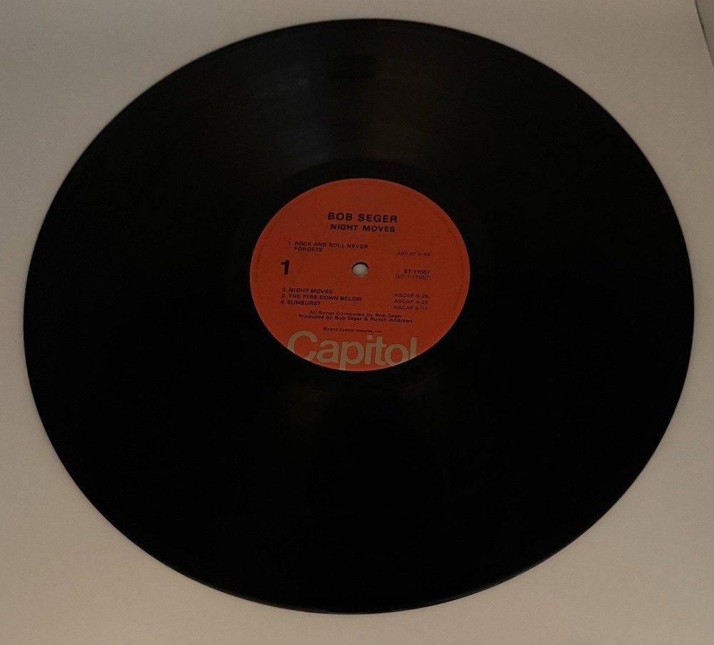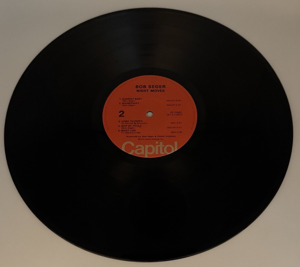 The BOB SEGER - Night Moves LP Vinyl is a classic rock record released in 1976 by Capitol Records. This 12" LP features the iconic artist Bob Seger and his Silver Bullet Band. The album is pressed on vinyl at a speed of 33 RPM and comes in a cardboard sleeve with the original cover art. With its timeless rock sound and nostalgic 1970s era feel, this LP is a must-have for any vinyl record collector or fan of classic rock music. See pics. (J-9)