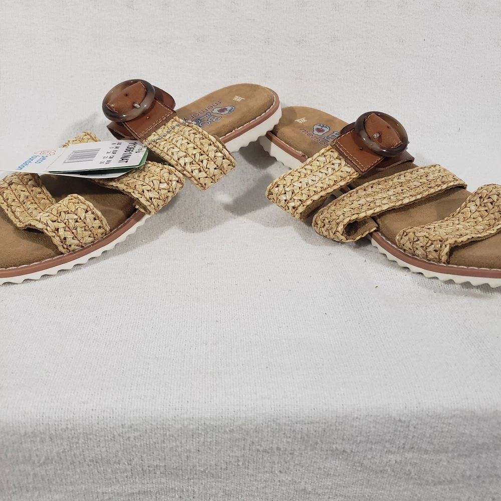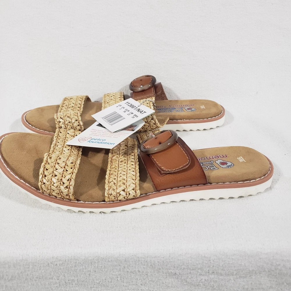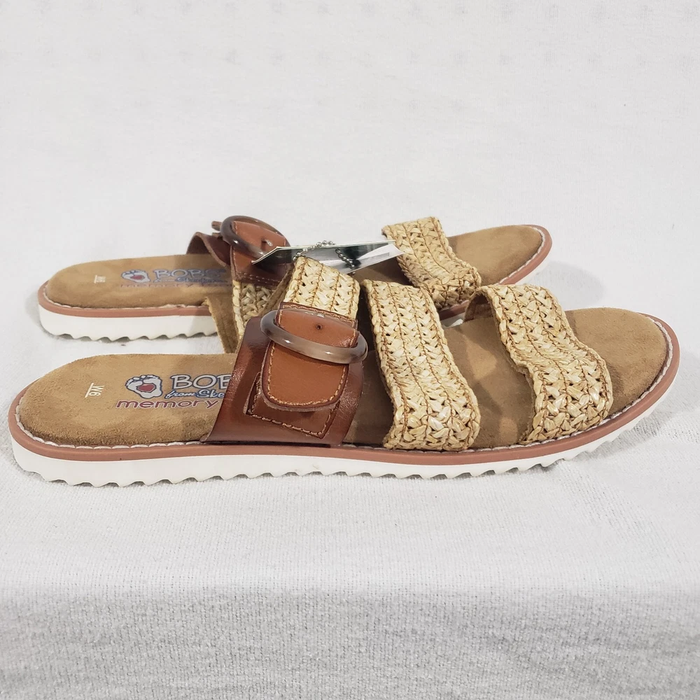 BOBS From SKECHERS Womens Tan Slip On Sandals Size 6 Buckle Straps Beach Casual