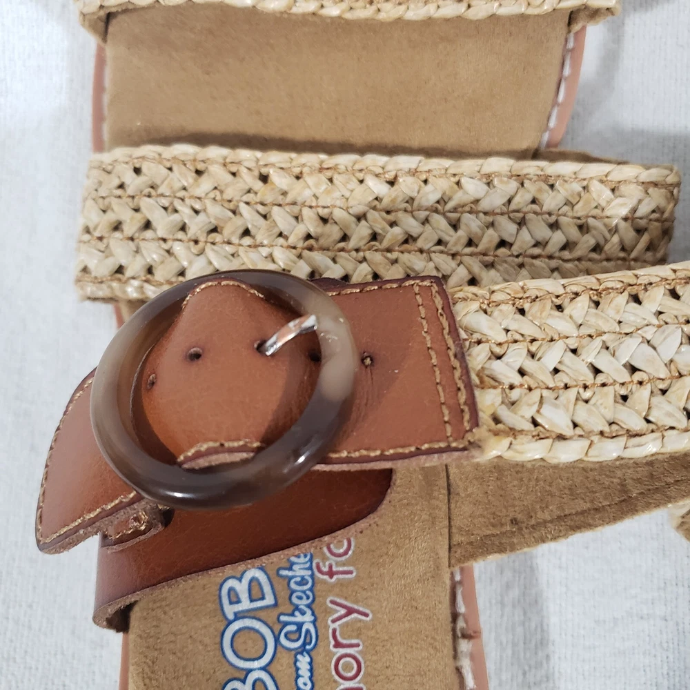 Closure: Buckle Type: Sandal Brand: Bobs Color: Brown Department: Women Season: Summer, Spring Theme: Outdoor, Nature, Bohemian, Beach, Travel, Everyday, Comfort, Vacation, Summer, Spring, Cruise Model: Skechers BOBS Pattern: Rattan straw Occasion: Casual US Shoe Size: 6 Style: Slip-On Features: Buckle, Straps Upper Material: Man made material
