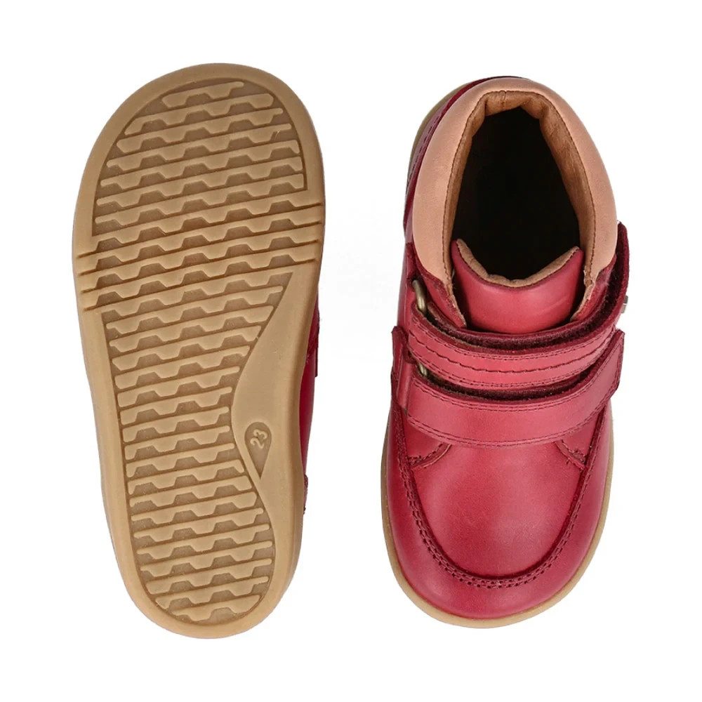 BOBUX I Walk Timber Cranberry Girl's Leather Ankle Boots with flexible soles. Lovely little leather boots with double strap adjustment. Quick dispatch. FREE Royal Mail 1st class delivery.