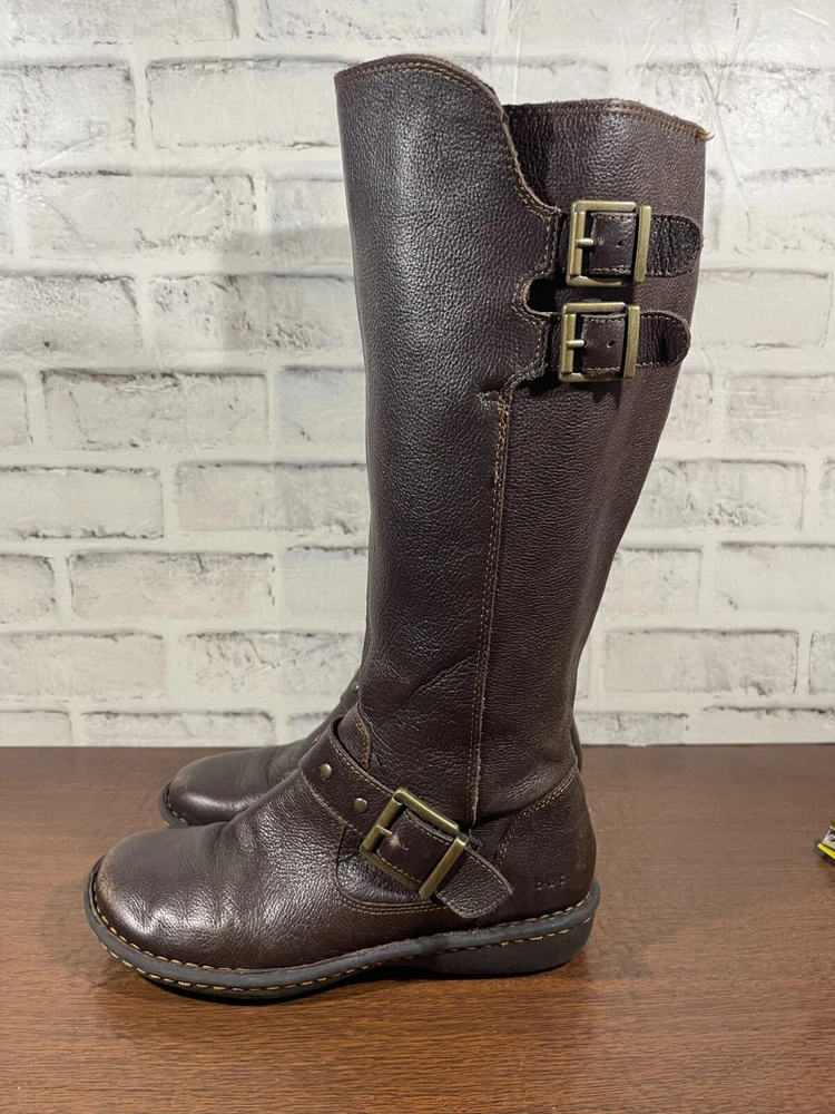 BOC Born Concept Boots Womens 7M Riding Tall MidCalf Zip Z49923 Brown Leather