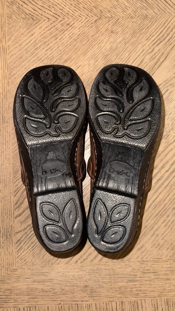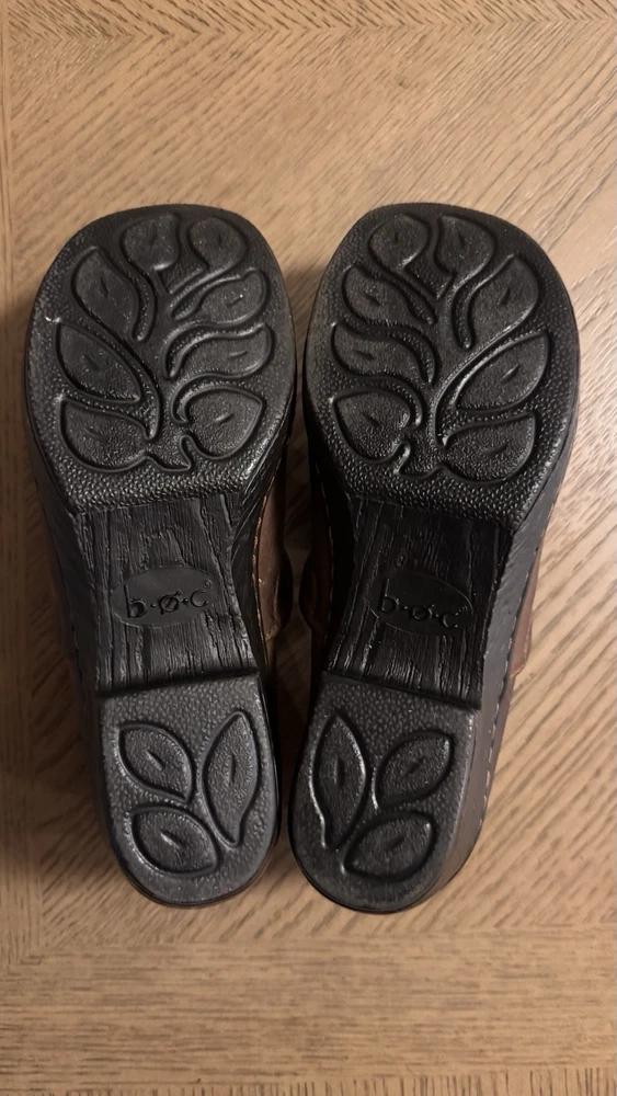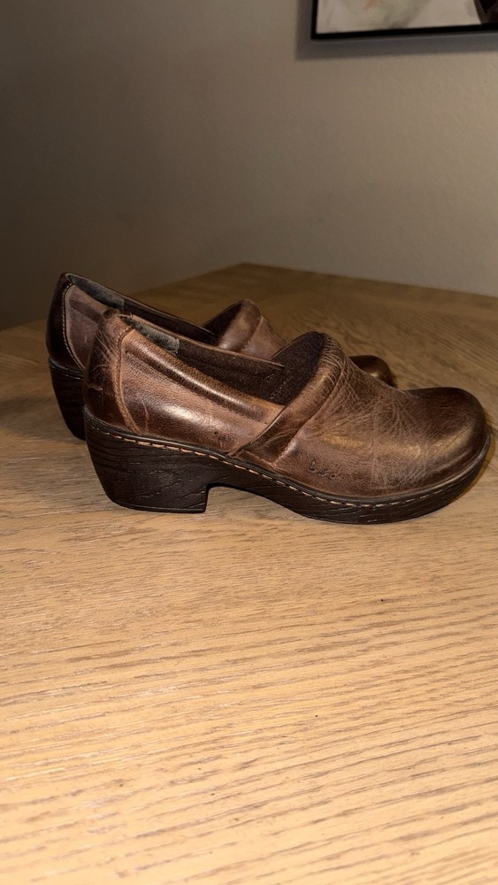 These BOC Born Concept Nadiyya clogs are stylish slip-on shoes for women with a round toe and a comfortable mid-height wedge heel. Made of brown leather with a solid pattern, these casual clogs feature a breathable faux leather lining and insole, making them ideal for all seasons. The Børn brand logo accents add a touch of modern style to the classic design. Perfect for walking and everyday wear, these clogs are a versatile addition to any wardrobe.