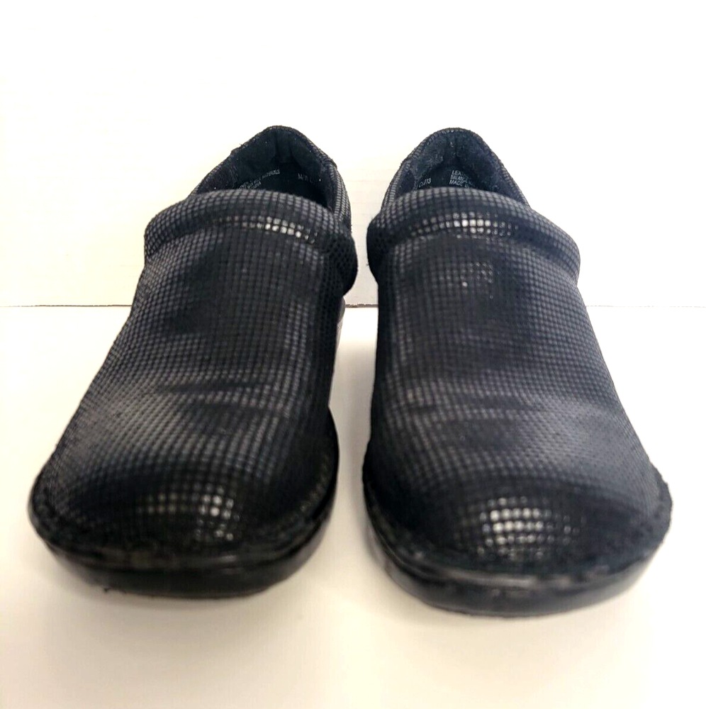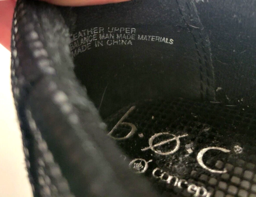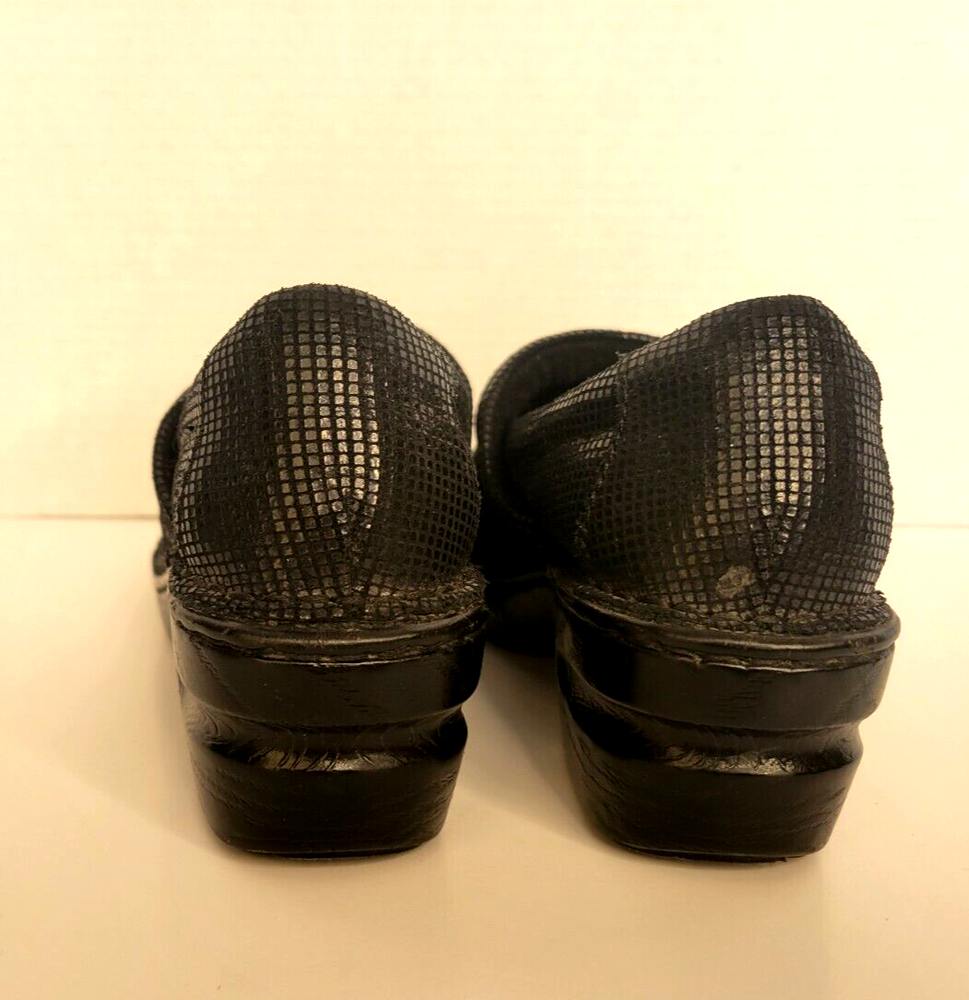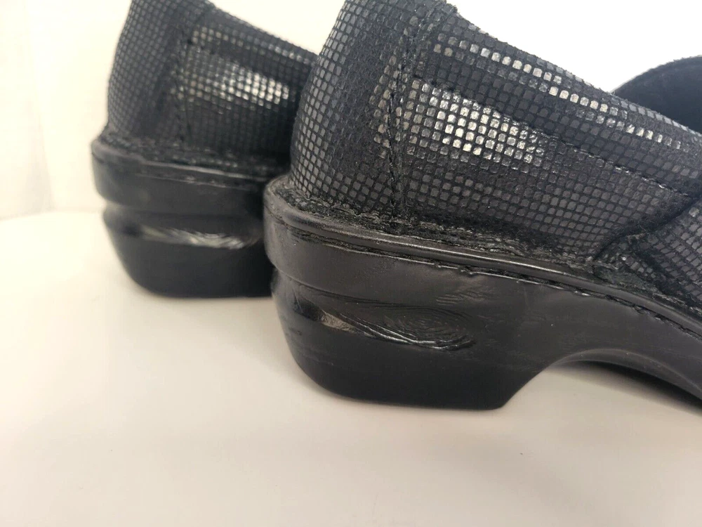 Born Concept BOC Women's Sz 8M Wedge Slip On Black Leather Shoes. Shiny exterior. There is one small scuff mark on the back of the right show (see pictures). Otherwise in great condition.