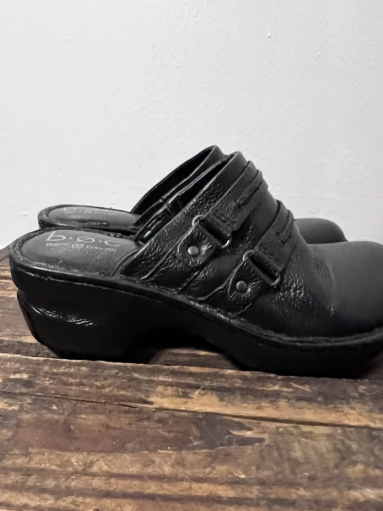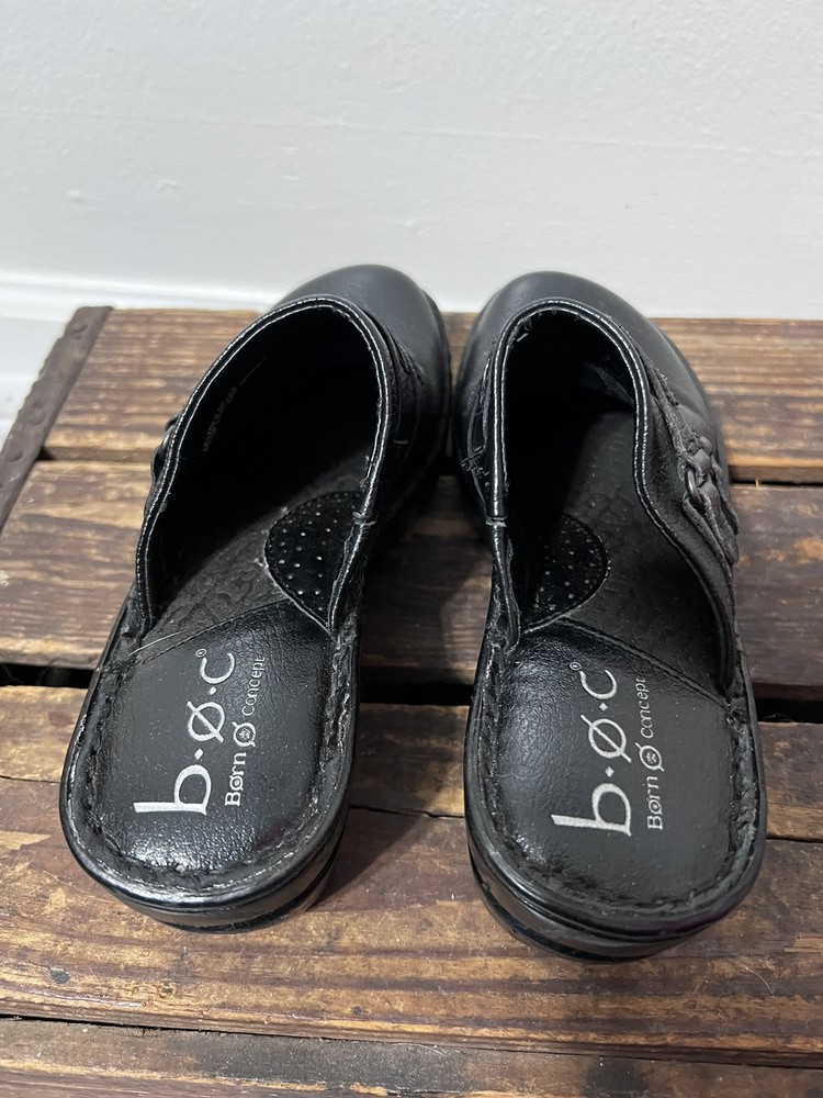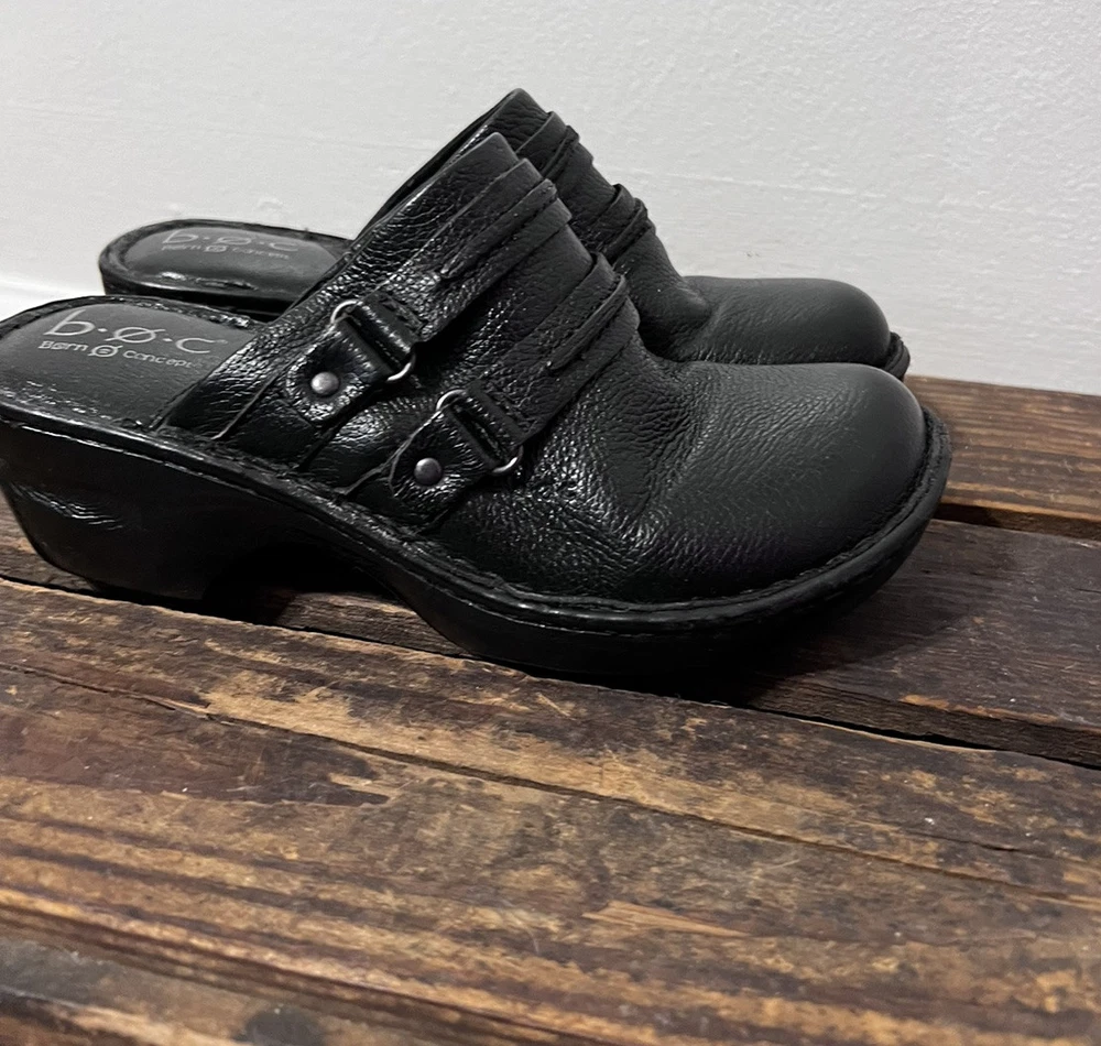 b.o.c. BORN Solid Black Leather Clogs Mules Shoes Womens Sz 6 M Looks like they were worn maybe once! Checkout the pictures!