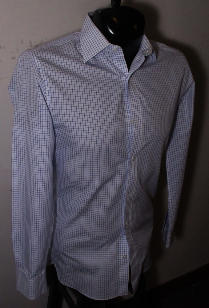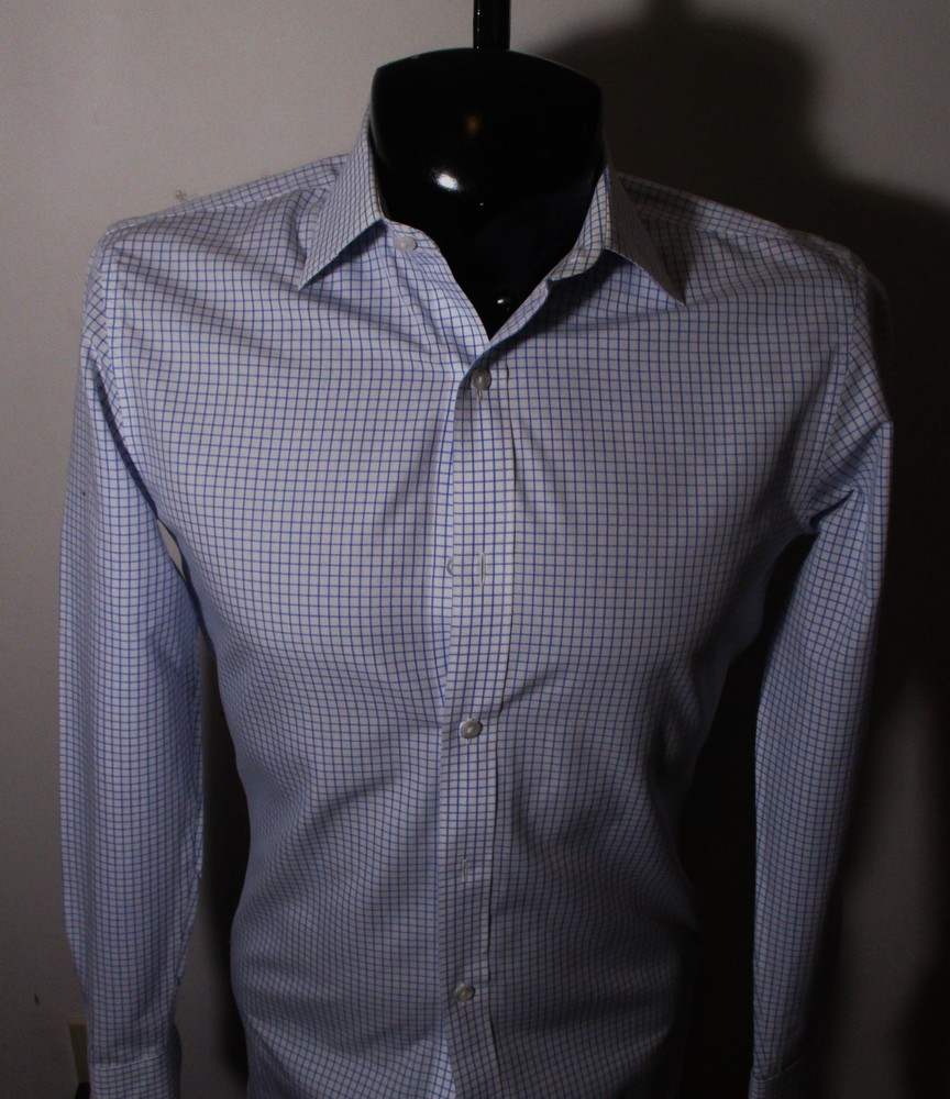 See my EBAY STORE at “SAMTPC53” to view 100’s more of my Men's Shirts!!! Combine Shipping: (on multiple items you pay full price on heaviest item first and then HALF PRICE shipping on ALL other clothes items. Men's Long Sleeve "Slim Fit" Dress Shirt. Brand: BONOBOS. Description: men's "Slim Fit" BONOBOS long sleeve dress shirt, button front, button cuffs, see pics Color: Blue White. Size: 15/34 (please see measurements). Measurements: 19" armpit to armpit, 30" shoulder to hem, 20.5" insleeve. Material: 100% Cotton. Condition: Excellent condition, NWOT.
