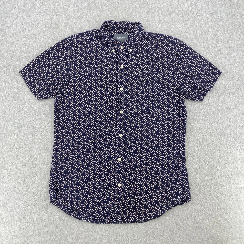BONOBOS Shirt Mens Medium Navy Blue Flower Print Short Sleeve Slim Fit Button Up Item: The photos provided depict the actual item you will receive. Any defects or spots will be clearly shown in the photos. Shipping: We offer fast and reliable shipping! All orders will be provided with a tracking number to ensure that your item arrives promptly. Return Policy: 30-day hassle-free returns. See our return policies for details. Feel free to reach out to us through eBay with any questions!