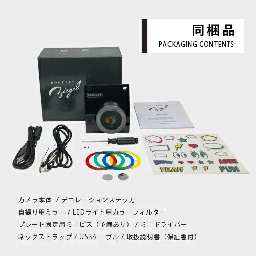 Description [Outlet product / packaging has defects] BONZART ZIEGEL Toy camera digital camera 18 million pixels Maximum effective pixels 18 million pixels Lens 5-element composition, F2.8 f=1.4mm Shutter speed 1/60 seconds Focus Fixed Zoom Digital 4x ISO sensitivity Auto / ISO100 / ISO200 / ISO400 EV value ±2.0 (0.3EV STEP) White balance Auto / Sunny / Cloudy / Fluorescent light / Incandescent light Self-timer OFF / 2 seconds / 5 seconds / 10 seconds Still image resolution 18 million pixels (4896 x 3672) / 5 million pixels (2592 x 1944, 3072 x 1728 HD, 2240 x 2240 SQ) / 3 million pixels (2048 x 1536, 2304 x 1296 HD, 1760 x 1760 SQ) Video Resolution: HD quality 720P (1280 x 720) Frame rate: 30FPS Audio: Mono, 256kbps Shutter Electronic Recording media SDHC card (up to 32GB) (sold separately) Power source Alkaline AA batteries x 3 (sold separately) / Can be powered via USB cable LED light 2-step dimming (20 LED lights) Language settings Japanese / English / Chinese Size H92 x W80 x D53 mm *Measured at maximum part Weight 175g (including batteries) 100g (main unit only) Warranty 1 year from purchase Shipping Our warehouse staff will ship it within 10 working days. Your parcel will be delivered by FedEx/Japan Post with tracking number from Japan. It usually takes from several days to 1 week. About Us My shop is located in Tokyo,Japan Delivering wonderful Japanese products to the world Please feel free to contact us if you have any requests. International Buyers - Please Note: - Import duties, taxes and charges are not included in the item price or shipping charges. These charges are the buyers responsibility. - Please check with your countrys customs office to determine what these additional costs will be prior to bidding/buying. - These charges are normally collected by the delivering freight (shipping) company or when you pick the item up - do not confuse them for additional shipping charges. - We do not mark merchandise values below value or mark items as "gifts" - US and International government regulations prohibit such behavior.