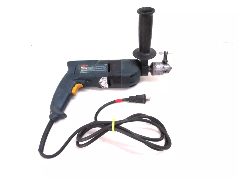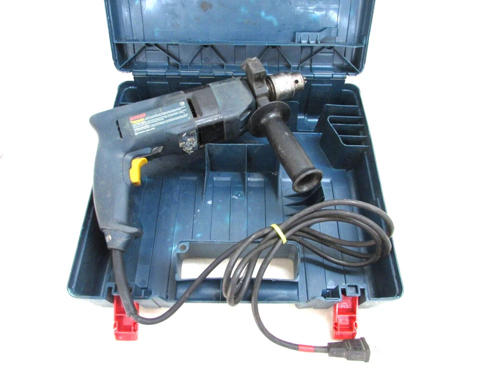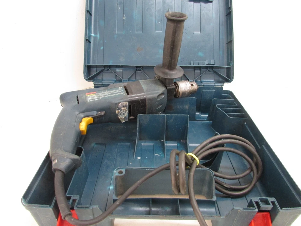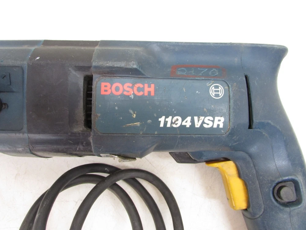 THIS IS A PREVIOUSLY USED ITEM BOSCH TOOLS No. 1194 VSR HAMMER DRILL WITH CHUCK KEY AND PLASTIC STORAGE CASE 120V 6 A 0-1000/3000 RPM COMES JUST AS PICTURED HAS PREVIOUS OWNERS ENGRAVINGS AND MARKINGS GOOD USABLE CONDITION! 21-E