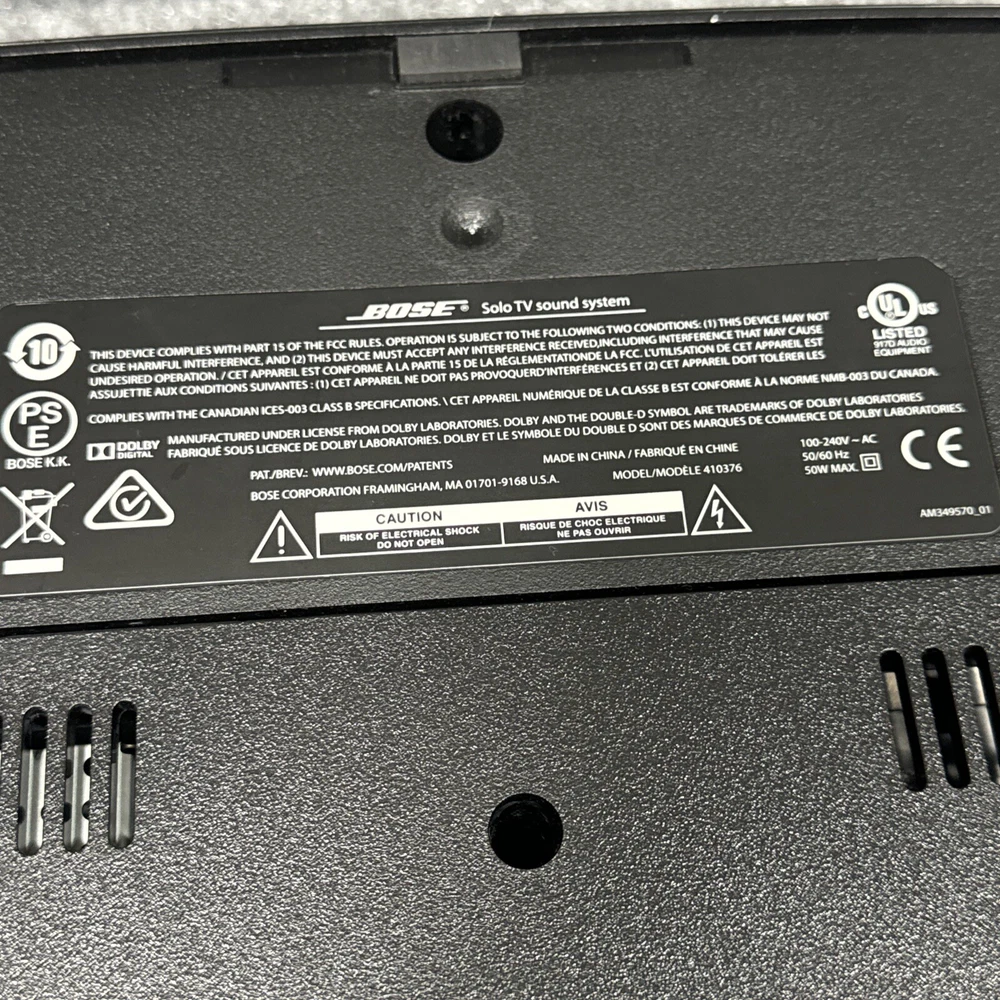 Enhance your TV viewing experience with the BOSE 410376 Solo TV Sound System. This 2.0 system comes with a universal remote and features Bluetooth technology for wireless connectivity. The system has been tested and is working perfectly. The BOSE Solo 410376 is a soundbar that is designed to provide high-quality audio outputs. It has digital coaxial RCA, 3.5mm input, Bluetooth, stereo L/R RCA, and digital optical TOSLINK audio inputs. The system is available in black color and has a RMS power of 100W. It is perfect for those who are looking for a wired or wireless connectivity option for their home audio needs.