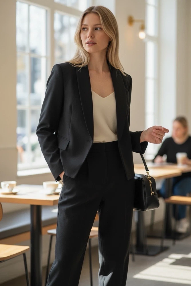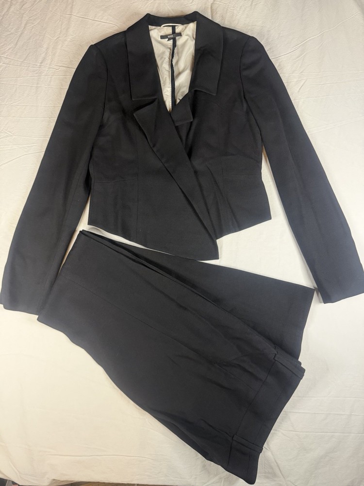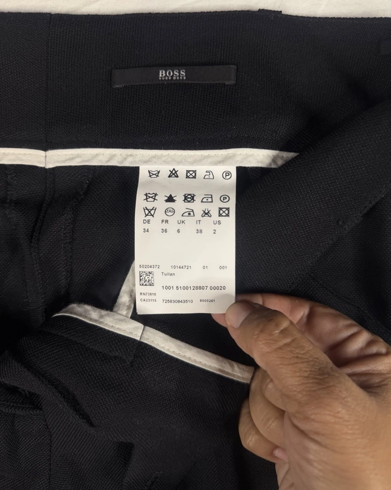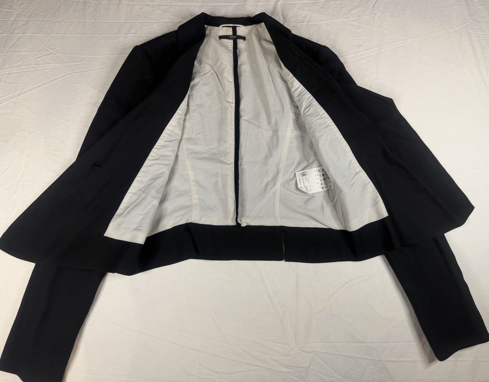 Elevate your wardrobe with this stunning BOSS Hugo Boss two-piece power suit, featuring the iconic Janelle blazer and Tulan trousers β a sharply tailored set designed for confidence and presence. This sculpted silhouette delivers a modern executive look with refined European tailoring and subtle textured fabric that elevates it beyond a basic black suit. Blazer (Janelle): β’ Structured tailoring with clean princess seams β’ Notched lapel β’ Two-button front closure β’ Flap pockets β’ Fully lined β’ Strong, feminine silhouette Trousers (Tulan): β’ Mid-rise waist β’ Sleek flat front β’ Belt loops β’ Bootcut / slight flare leg β’ Elegant drape with elongating effect Color: Classic Black Size: US 2 (DE 34 / FR 36 / UK 6 / IT 38) Condition: Excellent pre-owned condition No visible flaws. Please review all photos for measurements and details. This is not just a suit β itβs a statement executive set perfect for corporate wear, formal events, or elevated everyday power dressing. Timeless. Polished. Powerful. Keywords BOSS Hugo Boss suit, Janelle blazer, Tulan pants, power suit, designer suit set, womenβs tailored suit, black executive suit, bootcut dress pants, luxury career wear, structured blazer, European tailoring, modern professional outfit #BOSSHugoBoss #PowerSuit #DesignerSuit #ExecutiveStyle #WomenInBusiness #LuxuryFashion #TailoredStyle #LaBelleAdy π» LaBelle Ady β Vintage Beauty, Reimagined π»