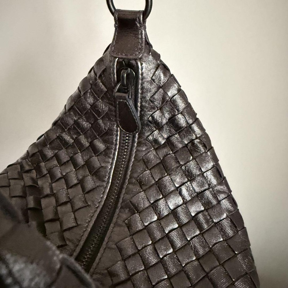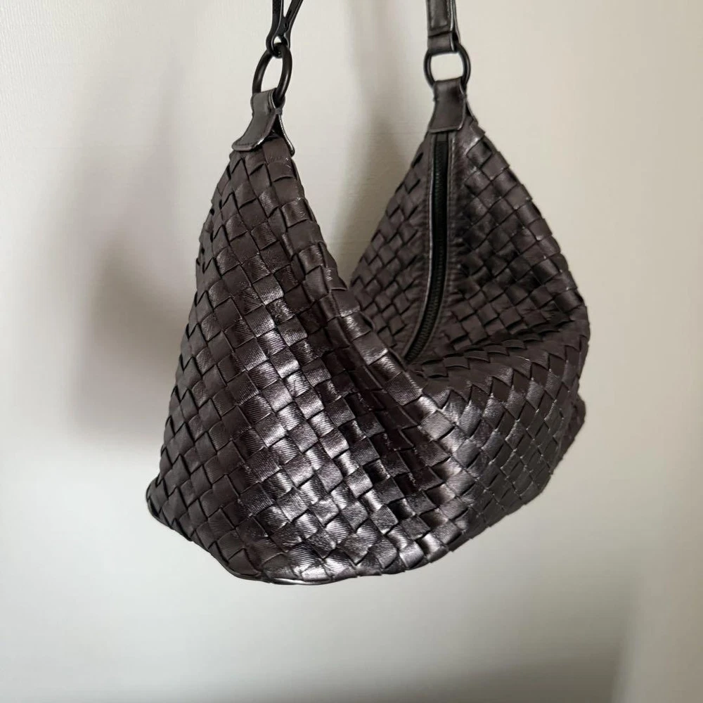 This Bottega Veneta Intrecciato shoulder bag is a stunning pre-loved find! The dark brown woven leather is luxurious and durable, showing minimal signs of wear. The craftsmanship is impeccable, with a secure zipper and a timeless design that pairs effortlessly with any outfit. It even comes with a dust bag, making it a fantastic deal for an authentic BV piece. Perfect for everyday elegance!