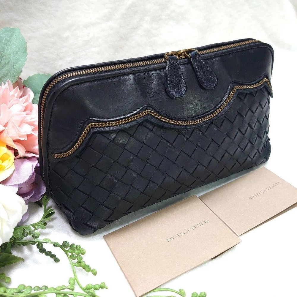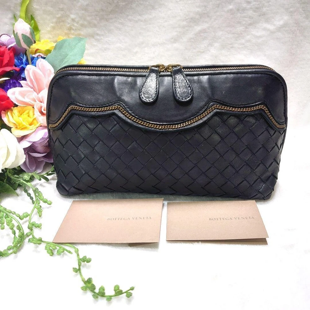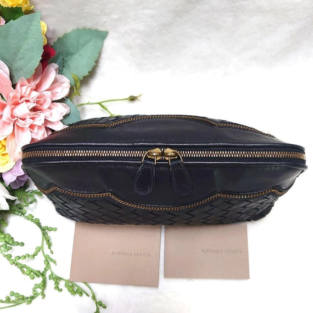 BOTTEGA VENETA Intrecciato Double Zip Chain Pouch Black Leather Rare Authentic Description - **Brand**: BOTTEGA VENETA - **Item**: Intrecciato Leather Pouch with Gold Chain - **Size**: - Height: 11 cm (4.33 inches) - Width: 19.5 cm (7.68 inches) - Depth: 7 cm (2.76 inches) - **Color**: Black with Gold accents - **Material**: Leather (Intrecciato woven design) - **Condition**: - Minor internal stains. - Overall good condition with no significant external damage. - **Features**: - Rare design, compact and elegant. - Gold chain detail adds sophistication. - **Accessories**: Includes original brand cards. - **Notes**: Pre-owned item; please check photos for details on condition. All of Items Will be Shipped From Japan. Please check with the image. About the condition Damages such as stains, scuffs, and scratches are listed only if they are noticeable. Please understand that this is a used item, so there may be some inconspicuous scuffs or signs of use even if they are not listed. Please note that there may be unnoticeable scuffs and scratches on the item even if they are not listed. Please check the images for details of the condition. Note: This is a used item. We have tried to describe the condition of the item with detailed pictures and text as much as possible, but please understand that there may be some things that we have overlooked because it is a used item. Please note that measurements are taken by our company, so please understand that there may be some errors. If there is no special description about the accessories, only this item will be included. Colors may look different from the actual item depending on your monitor and shooting environment. Payment Please pay within 7 days of first purchase. ebay payments We can not separate invoice. Please understand. Shipping&Handling ■Speedy Shipping Shipped by DHL, FedEx, or Japan Post with tracking number. *If your location is designated as remote, additional shipping charges may apply. (Some areas such as Australia, Canada, Chile, and remote areas of the U.S.) I will pack it carefully. ■Economy Shipping (Japan Post) Economy Airmail 15-40 days without tracking Additional shipping fees may apply for countries/areas where delivery by Japan Post is not available. Handling Time Please check the categories of Shipping and payments. International Buyers - Please Note: Import duties, taxes, and charges are not included in the item price or shipping cost. These charges are the buyer's responsibility. Please check with your country's customs office to determine what these additional costs will be prior to bidding or buying. If you have any questions about products, shipping, etc., please do not hesitate to contact us by message. Thank you for your understanding.