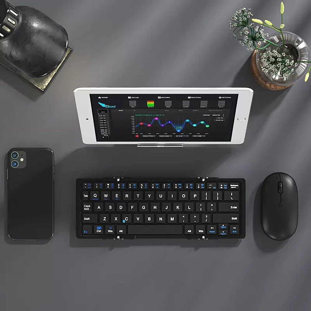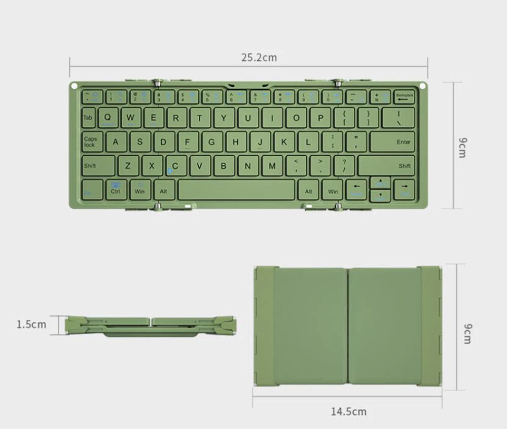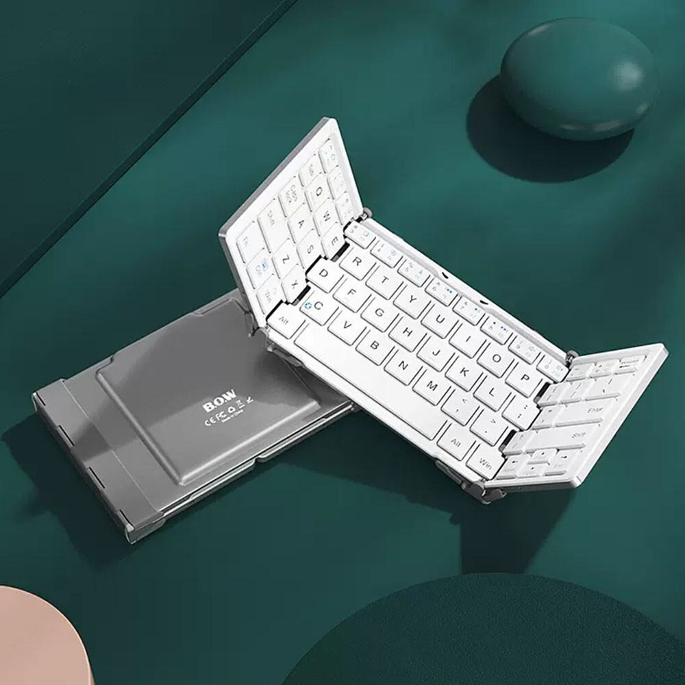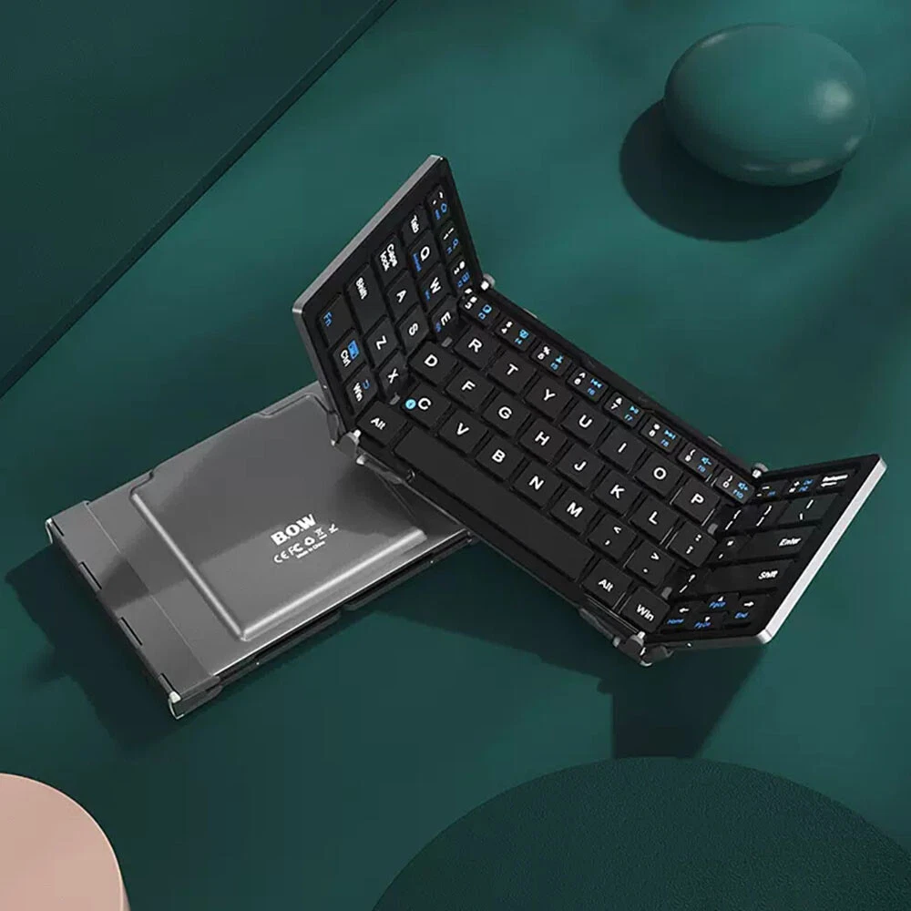 BOW HB066S Mini Folding Bluetooth Keyboard Suitable for Android, Windows, PC, Tablet, Phone Description: Interface standard: Bluetooth 3.0 Charging duration:<2 hours Lithium battery capacity:>210mA Effective operating range: within 10m Adaptive mode: GFSK Sustainable working time: 8 days Working voltage: 3.0~4.2V Working current:<2.5mA Standby current:<0.3mA Sleep current:<40UA Key lifespan: 3 million clicks