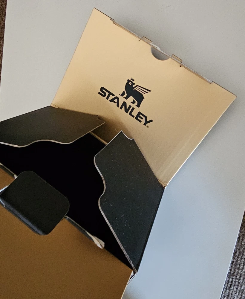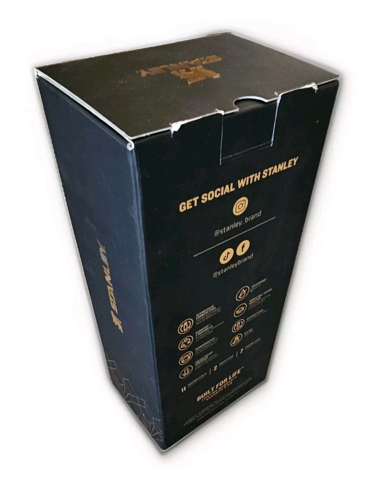 **NOTE: THIS LISTING IS FOR THE BOX w/ INSERTS ONLY. IT INCLUDES THE INNER DIVIDER/SUPPORT AND STANLEY PAPERWORK.** STANLEY LIMITED EDITION ART DECO COLLECTION QUENCHER FLOWSTATE H2.0 LIMITED EDITION 40 oz TUMBLER BOX. EXCELLENT CONDITION WITH ONLY SLIGHT WEAR FROM STORAGE. THIS ORIGINALLY HELD THE BLUSH GLOSS DECO COLORED TUMBLER. (See photos for details and condition) BOX MEASURES: 13" X 5.75" x 4.25" This is a great find if you're looking for a hard to find replacement box! Please review the measurements and photos very carefully. This is a used item, and some light wear should be expected unless otherwise noted. Please ask ANY and ALL questions prior to purchasing. This is being sold AS-IS, and NO RETURNS are accepted. Fully secure and insured shipping via USPS Mail. I SHIP FAST!! Please check out my other items for more awesome, vintage clothing and unique merchandise!!! Thanks for looking!