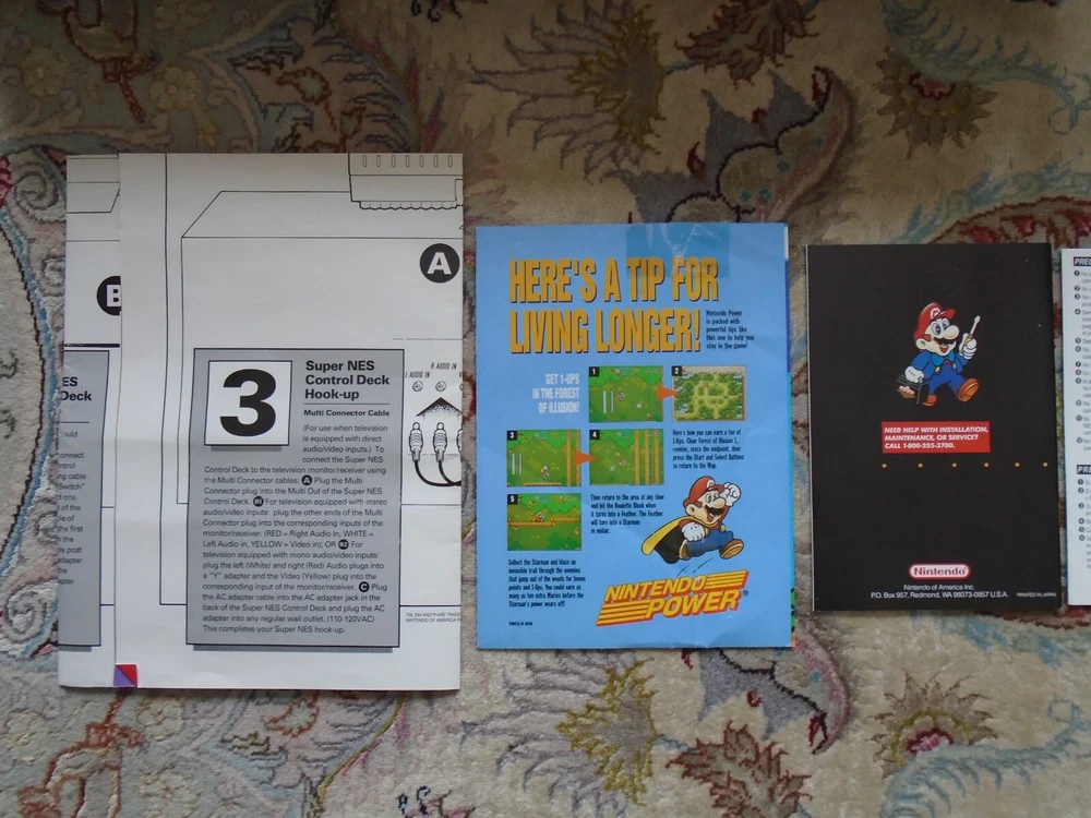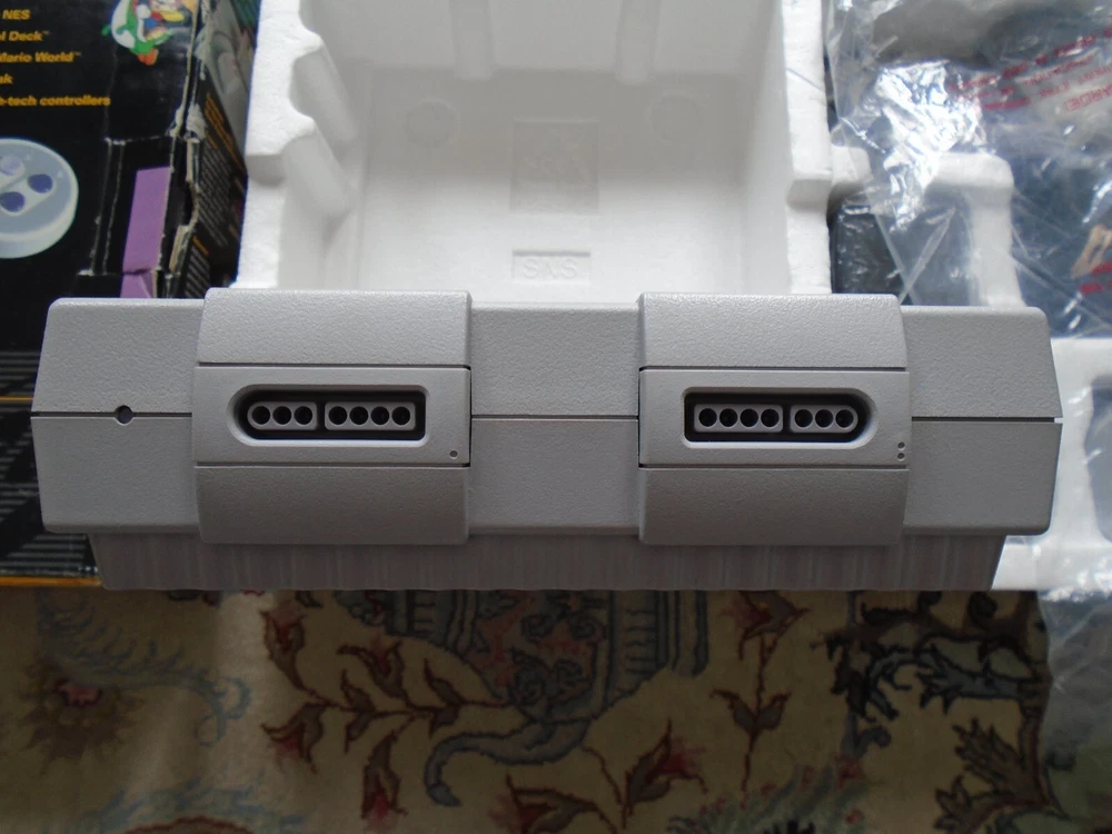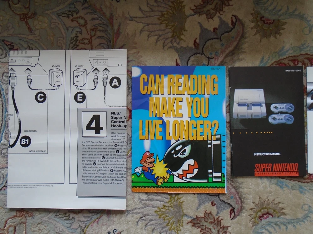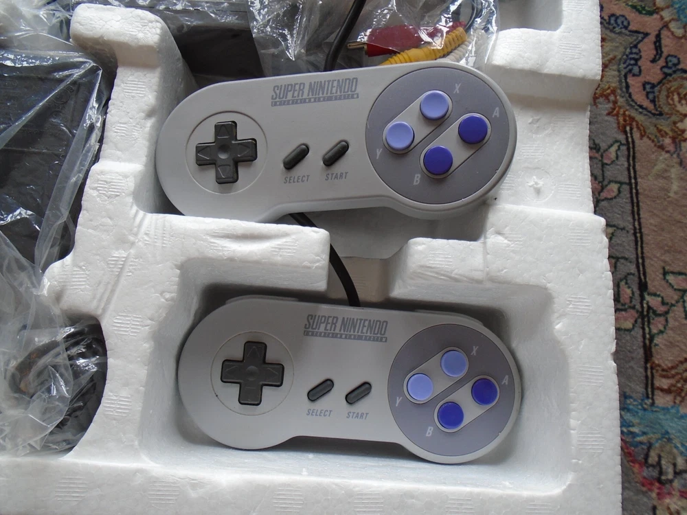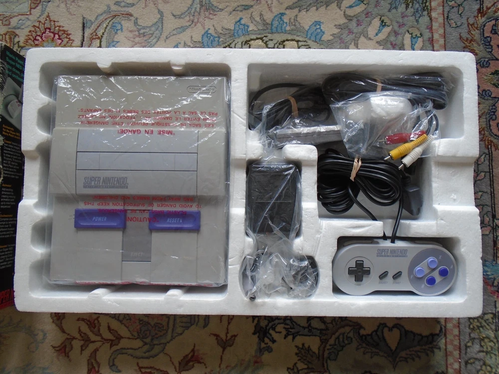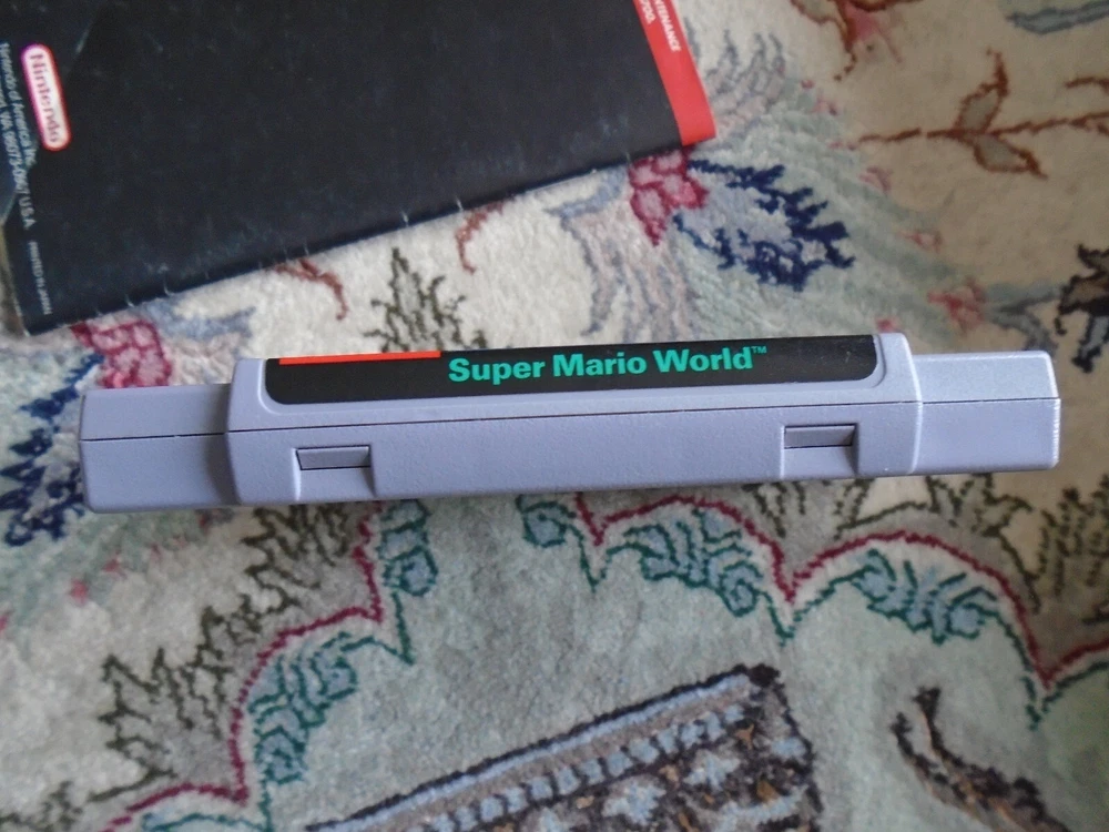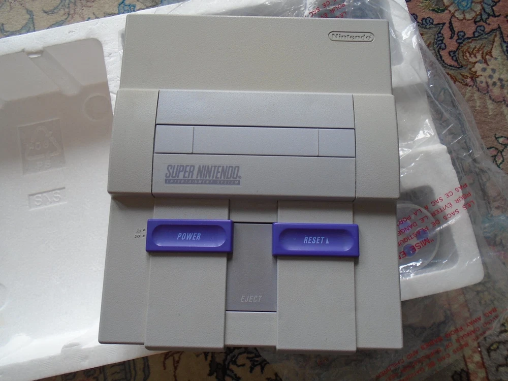 Video game bundle includes: Super Nintendo Console - model SNS-001 - with box, instruction manuals, pamphlets, inner foam piece, and some plastic bags 2 Nintendo brand controllers Necessary cables (Nintendo brand power cable, composite a/v cable, and RF audio/video cable) 1 authentic, original game included: Super Mario World with manual, and with active game saves on it! Functionality and Cosmetic Condition: Everything is fully tested and it all works perfectly! The items are in good to excellent to near mint used condition, with some signs of wear on the box. The console is a little discolored. The items come from a smoke-free, pet-free home. The photos are of the actual items being sold. We only accept returns if the items were not described correctly. Thank you for viewing our auction and good luck bidding!