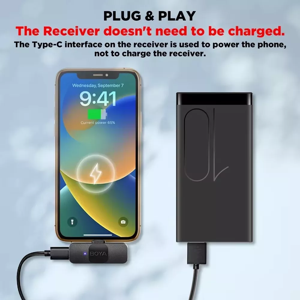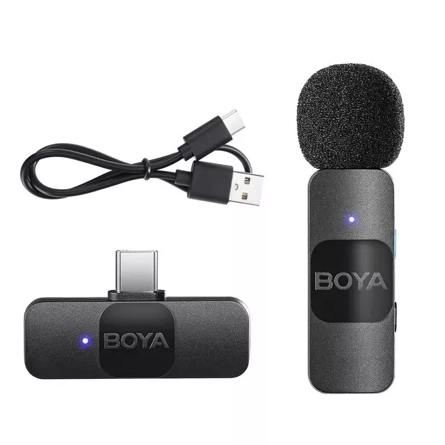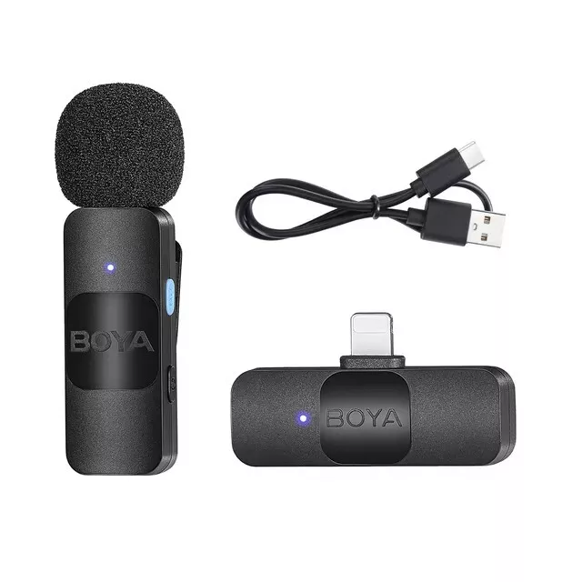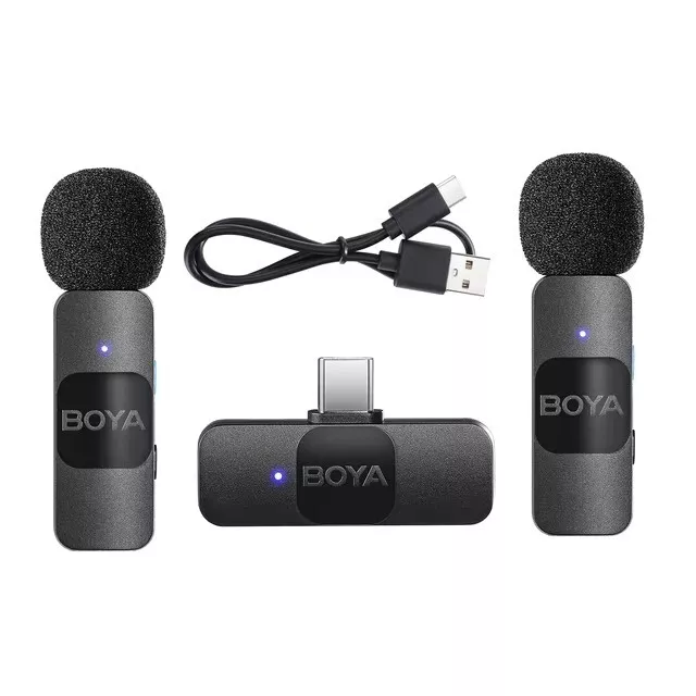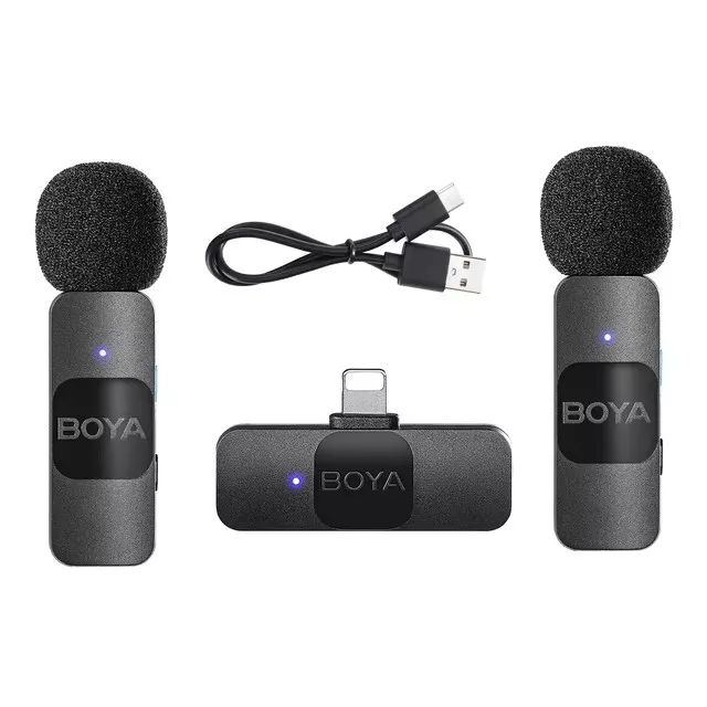 BOYA BY-V10 V20 V1 V2 Wireless Lavalier Microphone for Smartphone iPhone Samsung Transmission Type:2.4GHz Poplar Pattern:Omnidirectional Frequency Response:20Hz-16kHz Signal-to-noise Ratio:80dB Sensitivity:-42dB Operating Range:50m (without obstacles RF Output Power:6dBm Charging Port:USB-C Transmitter's Battery Capacity:95mAh Transmitter's Charging Time:Approx. 2 hours Transmitter's Battery Life:Approx.9 hours Receiver's Power Requirement:Supplied by External Devices BY-V1-TX/ BY-V2-TX: 9.5g BY-V1-RX/ BY-V2-RX: 6g BY-V10-RX/ BY-V20-RX: 6g BY-V1-TX/ BY-V2-TX: 52.22×25.23×19.75mm BY-V1-RX/ BY-V2-RX: 43.92×23.5×9.3mm BY-V10-RX/ BY-V20-RX: 43.92×24.7×9.3mm How to use For the kit of BY-V1/ BY-V10 1.Press and hold the power button for 2 seconds to turn on the BY-V1-TX transmitter. 2. Plug the BY-V1-RX into an iOS Lightning device or the BY-V10-RX into a USB-C device. 3. Transmitter and receiver will be suCCessfully paired within 10 seconds 4. You are ready to record For the kit of BY-V2/ BY-V20 1.Press and hold the power button for 2 seconds to turn on two BY-V2-TX transmitters 2. Plug the BY-V2-RX into an iOS Lightning device or the BY-V20-RX into a USB-C device. 3.Transmitters and receiver will be successfully paired within 10 seconds 4. You are ready to record BY-V1 BY-V1-TXTransmitter x1 BY-V1-RX Receiver X USB-C Charging Cable × Foam Windscreen ×1 BY-V2 BY-V2-TXTransmitter X2 BY-V2-RX Receiver x1 USB-C Charging Cable X2 Foam Windscreen ×2 BY-V10 BY-V1-TXTransmitter x1 BY-V10-RX Receiver × USB-C Charging Cable ×1 Foam Windscreen ×1 BY-V20 BY-V2-TX Transmitter ×2 BY-V20-RX Receiver x1 USB-C Charging Cable ×2 Foam Windscreen ×2 Payment Delivery details Terms of sales About us Contact us Payment Warning : every international Order will have inport Tax problem with Customs ,Please clear customs by buyer,we will lower the declare price on invoice Please do not open the Return directly ,any order problem You can send message to us first ,we will solve it very fast ,thank you 1.We accept payment via T/T, PayPal for USD dollars .Alipay and Wechat payment for RMB 2.We will deliver your goods within 20days after payment. 3.We will pack the goods well with exporting packages and bubble wrap to make sure all goods in a good condition during storage and delivery. 4.We usually use express delivery like DHL, UPS, FedEx, TNT and EMS, as we enjoy perfect discount in these companies. 5.We have well-trained and professional sales & after-sale services persons who can speak English fluently. Delivery details Each international package will have inport Tax problem with Customs ,Please clear customs by buyer Terms of sales 100% Official and official product About us China mainland super top seller wholesale company about video studio photography Camera equipment cargo .100% brand original and official Contact us Please send ebay message for asking product , we will reply you in 24 hours ,thank you