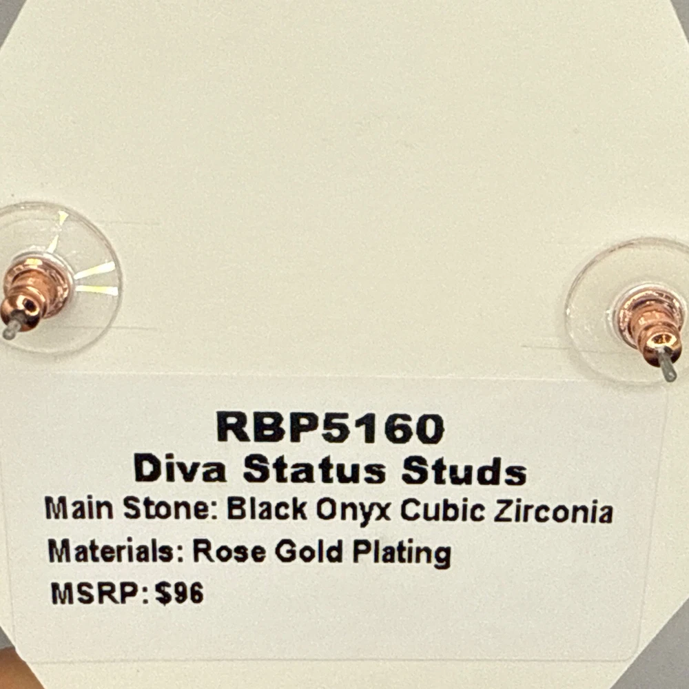 BP Black Onyx Rose Gold Diva Status Studs RBP5160 Earrings BORG