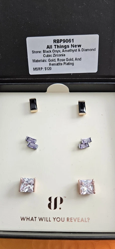 HomeBP SIMPLY STUDS RBP9061 "All Things New" Black Onyx, Amethyst, Cubic Zirconia