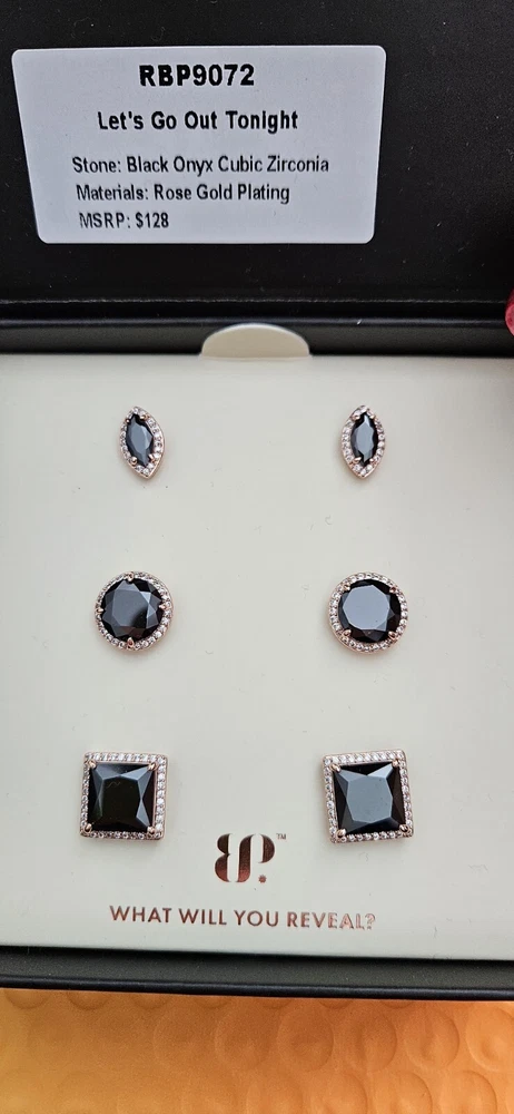 BP Simply Studs RBP9072 "LET'S GO OUT TONIGHT" Black Onyx ~Rose Gold Plating