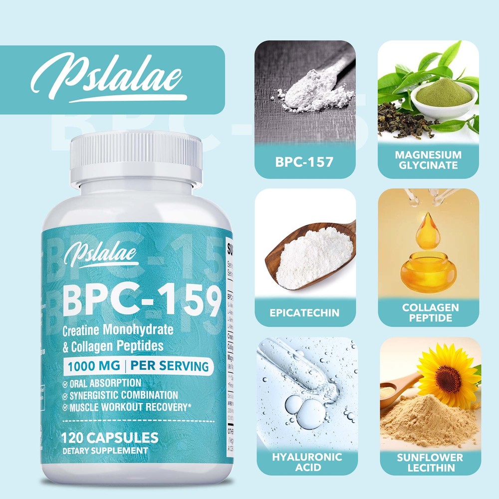 Effects: Muscle & Gut Health, Joint Support, Pain Relief Ingredients: BPC-159 Blend,Collagen Peptides,Creatine Monohydrate Directions: Take 2 capsules once daily after a meal. Shipping: Ships within 48 hours on working days. Shelf life: 2 years Description: MAXIMUM ABSORPTION & CONVENIENCE,SYNERGISTIC INGREDIENTS: Our BPC 159 peptide supplement is formulated with a combination of ingredients to maximize the overall effectiveness of the product and can be incorporated into your daily life. ADVANCED BPC 159 COMPLEX: Our BPC-159 capsules are formulated with the latest BPC 159 complex. NATURAL INGREDIENTS: BPC-159 supplement is made with premium natural ingredients and is free of chemicals, sugar, dairy, and gluten. Document