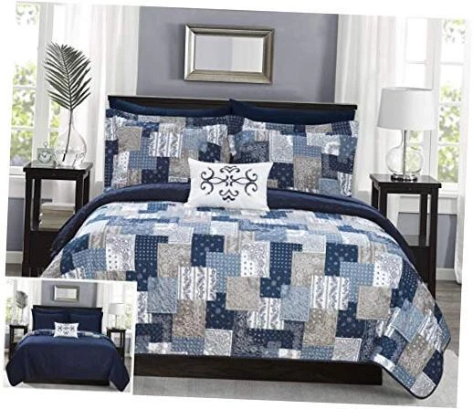 Return Policy Fast Delivery Trusted seller BQS11374-AN Eliana 4 Piece Reversible Coverlet Set Embossed Patchwork Bohemian Paisley Print Quilted Design Bedding-Decorative Pillow Shams Included, King, Blue Product Description Microfiber LUXURIOUS SUPER SOFT PLUSH MICROFIBER – The quilt is made with premium quality cotton-feel brushed microfiber for an amazing night’s sleep LIGHTWEIGHT HYPOALLERGENIC FILLING – This quilt is filled with synthetic down alternative filling, ideal for those with allergies STYLE AND COMFORT – Our fashion forward quilt sets blend style and function to give you the best looking and most comfortable bedding CONTEMPORARY DESIGN – Fashion forward Bohemian inspired paisley print patchwork design on the face with an embossed solid color backing – Design and color coordinated pillow shams and an embroidered decorative pillow complete the look MADE WITH YOU IN MIND – Every set is made with strict quality control and comes with a king size reversible quilt, design coordinated reversible pillow shams and an embroidered decorative pillow Shipping Returns Payment Shipping Shipping is FREE to all addresses other than APO/PO boxes in the lower 48 states. All our stock ships from US-based warehouses. Shipped via USPS or UPS (depending on location and package weight) Unless stated otherwise, all orders will ship within 24-72 hours of your payment being processed. Check our feedback to see the great reviews of FAST shipping we offer. Returns Seller does not accept returns Payment We currently accept payment via eBay managed payments only. Once payment is cleared, we will dispatch your shipment within 1-3 business days. Please refer to the "Shipping" tab for more information regarding shipping speed to your destination.