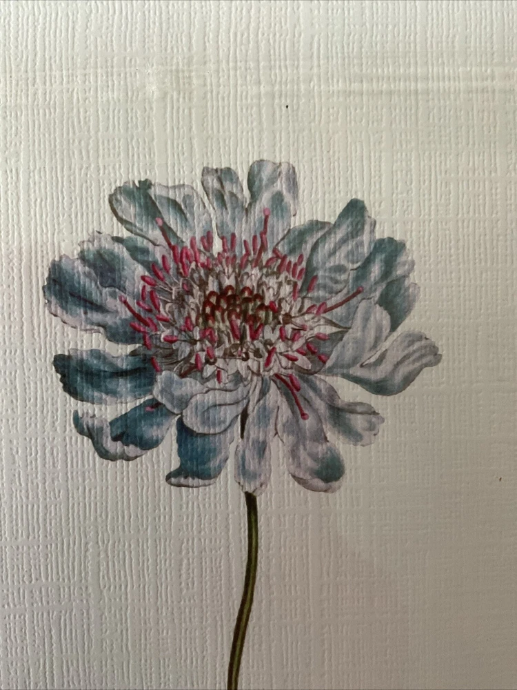 This beautiful Blue Flower Wall Art was produced by Vintage Floral Wall Decor. It originally came in a set of 9, but I only needed 8. The linen embossed cardboard material gives it a unique texture and the vertical orientation makes it a perfect addition to any room. The 5”x7” size is ideal for framing and displaying, or you can choose to have it unframed and add it to your collection of botanical prints. The blue color of the flower adds a pop of color to any room and the reproduction of the original print makes it a timeless piece of art. The item is new in its original packaging and is perfect for anyone who loves floral wall decor.