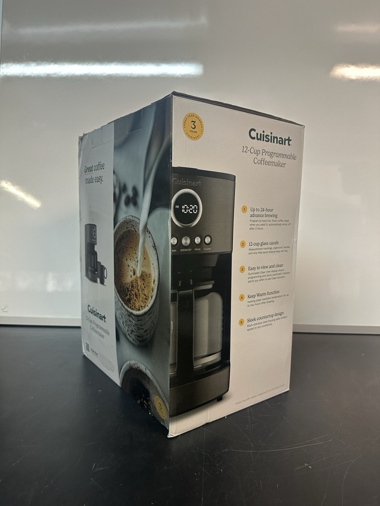 BRAND NEW LOWEST PRICE ON EBAY! SAME DAY PROCESSING! The BRAND NEW Cuisinart 12 Cup Coffee Maker DCC-1220 is a sleek and powerful electrical coffee maker that can brew delicious coffee using ground coffee. With a shiny black finish and programmable features, this Cuisinart DCC-1200P1 model is perfect for any home coffee lover looking for a high-quality coffee maker. This 12 cup coffee maker is designed to make brewing a large batch of coffee fast and convenient, making it ideal for those who prefer to enjoy a robust cup of coffee.