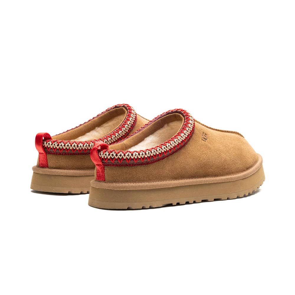 The BRAND NEW UGG Tazz Slipper in Chestnut is a cozy and stylish slip-on shoe perfect for casual occasions. Featuring a low heel height and rubber outsole, these slippers are designed for comfort and warmth during the winter, fall, and spring seasons. The suede upper material with sheepskin lining and wool insole provides a soft and luxurious feel, while the signature UGG logo adds a touch of accent. Made with high-quality materials and craftsmanship, these UGG Classic slippers are a great addition to any unisex kids' shoe collection.