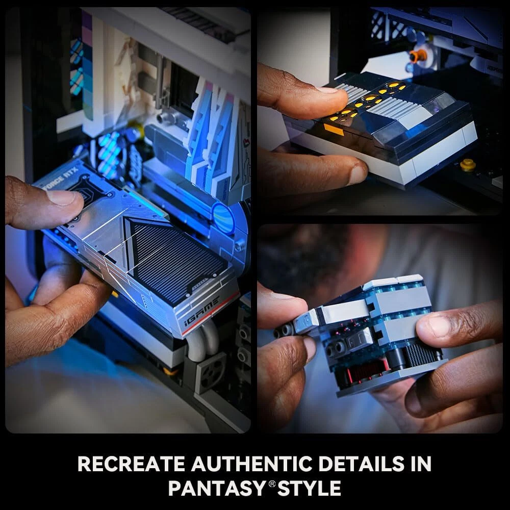 Revolutionary Design: Get ready for a groundbreaking experience with the world's first-ever building set computer case! Unleash your creativity and build your dream gaming computer case with this exceptional set. Through a dynamic collaboration, this unique computer model combines innovation and excitement, offering a thrilling project for tech enthusiasts. In-Depth Hardware Assembly: Crafted for enthusiasts, this set allows you to assemble a graphics card, power supply unit, dual SSD hard drive docking station, motherboard, and two DDR RAM modules. Each component is meticulously designed for seamless integration, providing you with the true essence of a real PC case – with the added satisfaction of disassembly and reassembly. Elevate Your Space: Craft a captivating PC desktop computer case display with our innovative building kit, measuring 21.7cm in height, 8.6cm in length, and 21cm in width. Transform your home or office decor with an exclusive lighting design that delivers mesmerizing effects, setting your space apart from the ordinary. Creative Kit, Ideal Gifting: This building block kit, born from the visionary design of creative experts, makes an ideal gift for birthdays, anniversaries, weddings, or housewarmings. Perfect for all age groups, this Idea Building Blocks Set captures the joy of creativity and the excitement of assembling an iconic piece, whether for yourself or a special someone. Perfect Block Fit: Experience the magic of optimal block alignment with our precision-engineered Building Bricks. Each block is meticulously designed for a snug yet secure fit, ensuring your creation stands the test of time. The assembly guide features crystal-clear, step-by-step instructions for an effortless construction process.