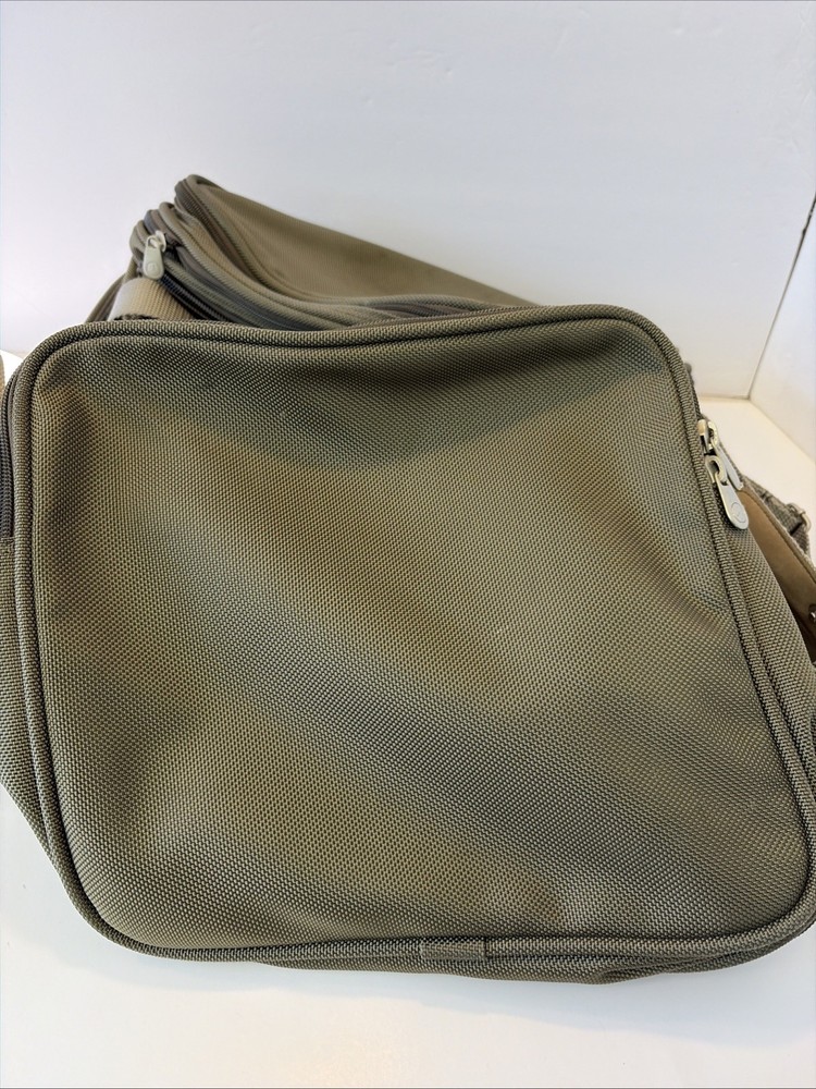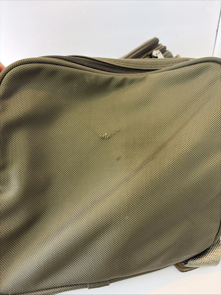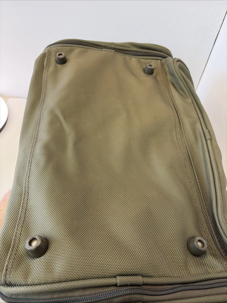 The BRIGGS & RILEY Baseline Double Expandable Cabin Carry-On Weekender Duffle Bag 21 is a versatile and durable travel essential. Made of sturdy nylon material, this green bag features a solid pattern and is designed for weekend getaways and short trips. With its expandable design and suitcase-style construction. The adjustable shoulder sling adds extra mobility, while the unisex adult design makes it suitable for any traveler. Trust the Briggs & Riley brand for quality and reliability in your next adventure. No wheels.