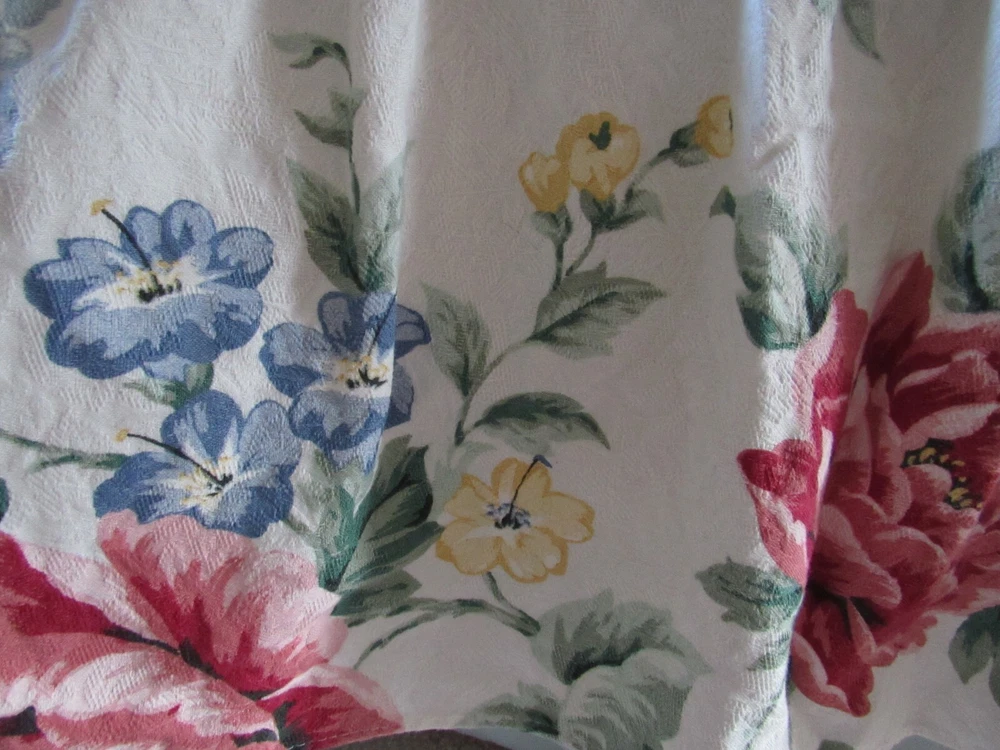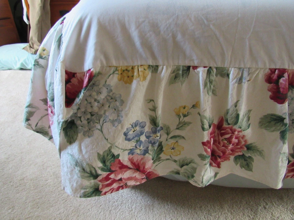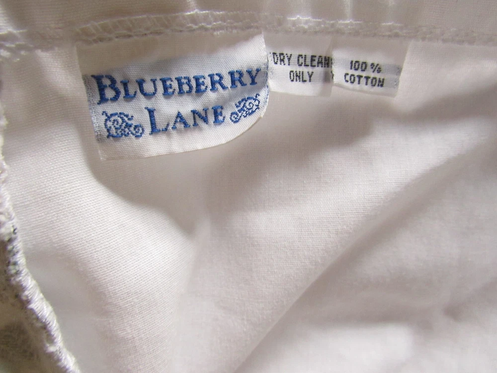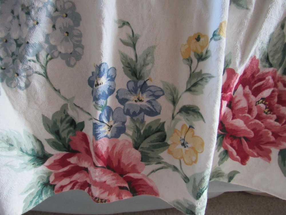 Very Pretty BLUEBERRY LANE Bedskirt Bright Colorful Flowers of Pink, Blue, Green & Yellow on Textured White Fabric 59" Platform with 13" Drop High Quality Fabric; Nice & Thick I believe it is from Italian Fabric from the Research I Found Excellent Condition; Never Used Weighs 2 1/2 Lbs Unboxed