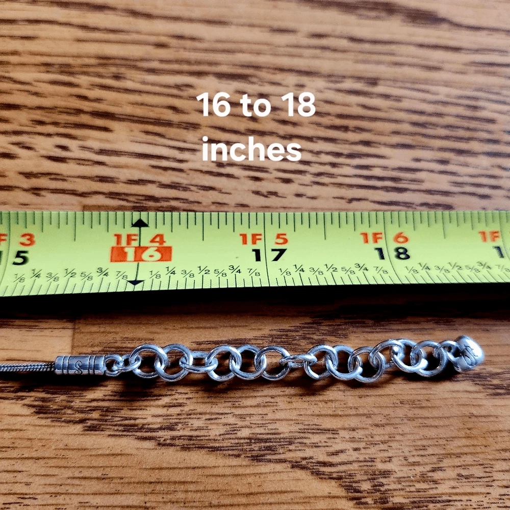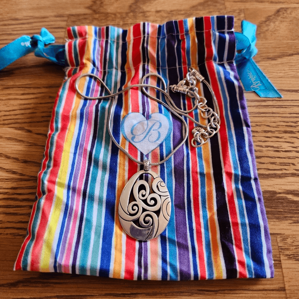 Item Description: Beautiful "Mingle" Silver Scroll Necklace from Brighton Condition: Very Good, Used, Slight ware to finish Approximate Measurements: Length - 16 to 18 inches Pendant Length - 1.5 inches Material: Silver Plate Special Features: Beautiful Silver Plate finish, Scroll design, tear drop shape, Cut-Out, Fluid Chain, Etched End caps, lobster claw clasp, extension, Brighton charm at nape. Lovely and Comes with Brighton Jewelry Bag shown 😍 JEWELRY SPECIAL: Bundle 3 items, least expensive is Free plus $5 off Shipping! Let me know if you need help with the Offer Price!! ⚘️Reasonable Offers Always Welcome⚘️ 💓Love Brighton? Browse My Listings!