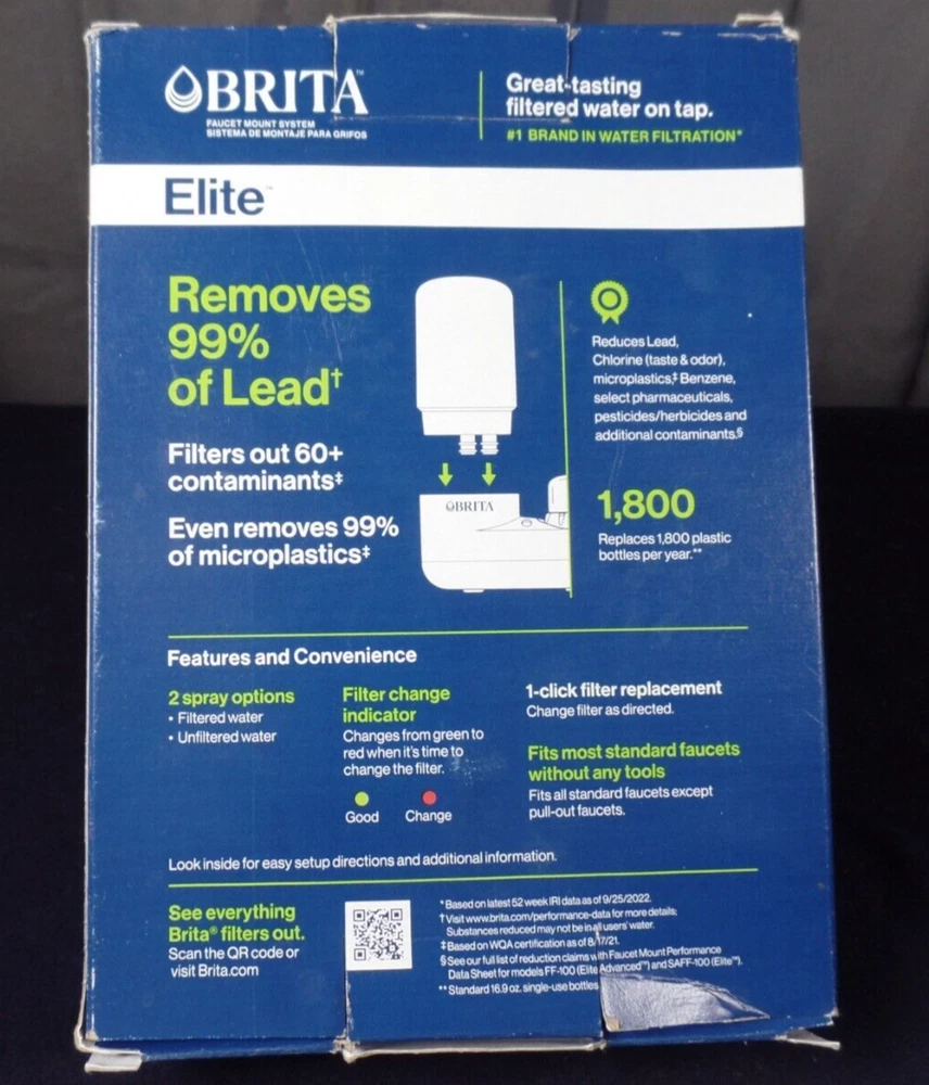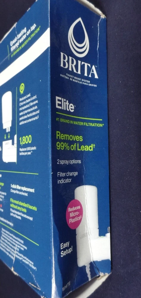 The BRITA Elite Faucet Mount Filtration System is designed for household use and offers a capacity of 100 gallons of filtered water. It comes in a white color and utilizes a carbon/charcoal filtration method to remove multiple contaminants from your water supply. This faucet mount filter is compatible with BRITA and Brita Elite models, providing clean and purified water directly from your tap. Note the box is a bit beat-up, but the system and filter inside the box are fine; still new unused. Please review all photos.