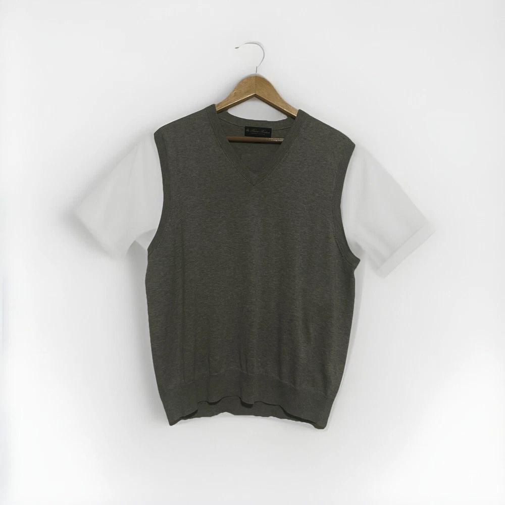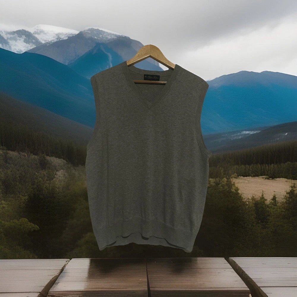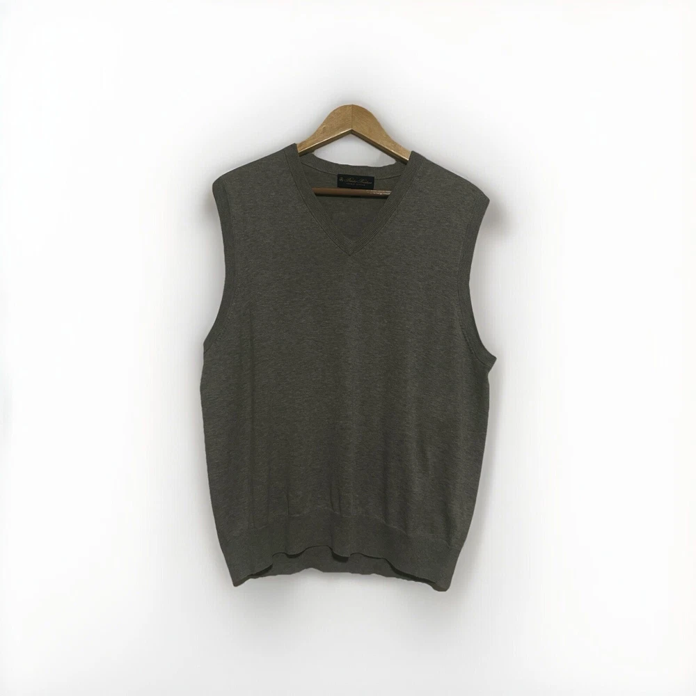 This grey vest from Brooks Brothers is a versatile piece perfect for travel, casual wear, work or business attire. Made from 100% cotton Supima, this vest is lightweight, breathable, and stretchy, making it comfortable for various activities such as walking, riding, golf or hiking. The vest features a solid pattern and an unlined interior with Unisulatex insulation material. The Brooks Brothers 346 vest is a classic and preppy style suitable for different occasions and themes such as USA, Christmas, Dad, Bohemian, Outdoor, Fish, and Classic. This vest is available in size L and is a regular fit. The fabric type is knit, and the vest is designed in China.